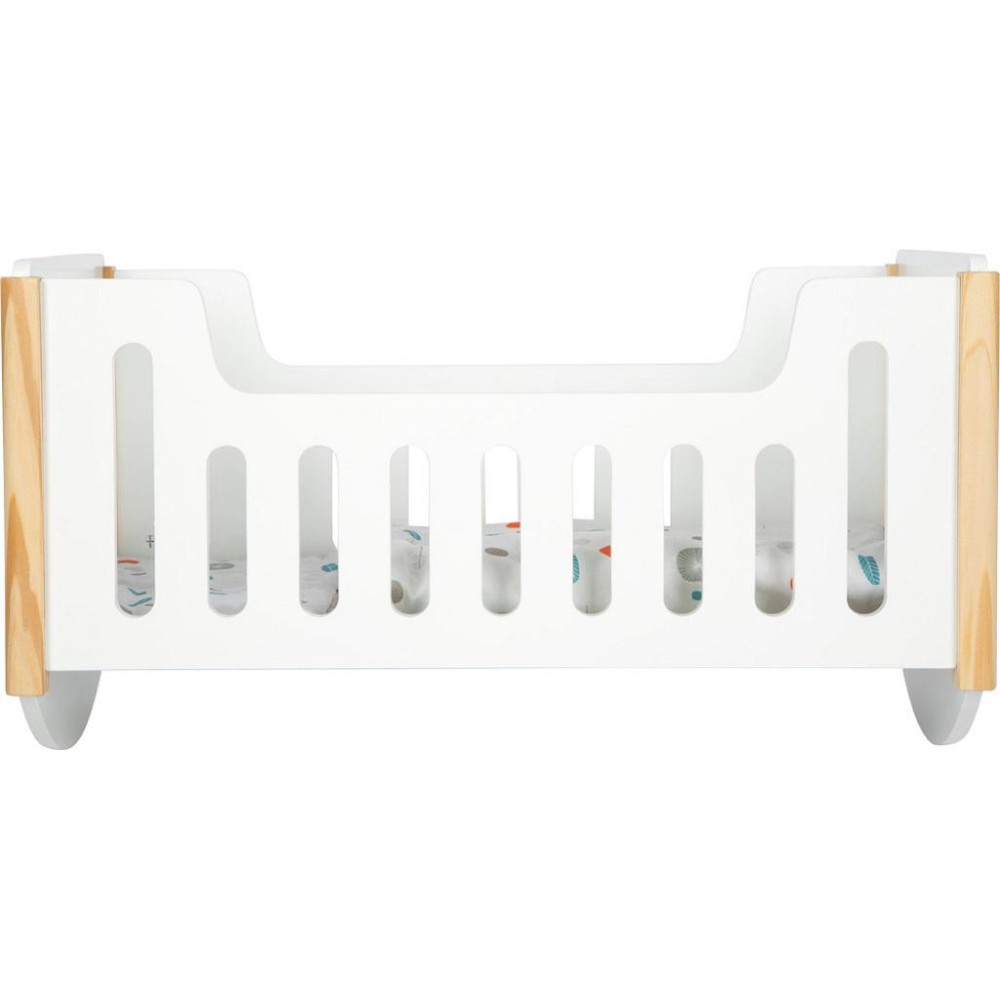 Tato moderní dřevěná kolébka ve skandinávském designu je ideální postýlkou s možností jemného houpání panenek či plyšových zvířátek. Součástí balení je polštář a velká peřinka, které jsou povlečené do barevně neutrálního oboustranného povlečení. Navíc je peřinka dostatečně velká, aby pod ní pohodlně mohly spát panenky nebo plyšáci do velikosti 46 cm. Vysoce kvalitní, stabilní konstrukce, zaoblené hrany, jemné barevné tóny činí z kolébky stylový a kvalitní kousek. Perfektní hračka do každého dětského pokoje. Balení obsahuje: 1x postel, 1x polštář, 1x přikrývka. Hlavní vlastnosti: dřevěná kolébka a postýlka v jednomnadrozměrná dekaoboustranné ložní prádlorobustní konstrukce, kvalitní zpravovánízaoblené hranypro panenky a plyšáky do 46 cmskandinávský design, jemné barevné tóny Little ButtonŘada atraktivního příslušenství pro panenky Little Button nabízí pestrou paletu výrobků, od kočárku přes jídelní židličku až po skříň. Zákazníky snadno zaujmou jednotným funkčním a decentním designem využívajícím přímé linie a střídmé neutrální barvy. Díky tomu spolu mohou vytvořit ucelené harmonické soupravy, které vkusně doplní moderní interiér. Důmyslná konstrukce a kvalitní zpracování pomáhají zajistit vysokou stabilitu, bezpečnost a dlouhou životnost. Založte s jejich pomocí stylový koutek pro panenky, kde mohou Vaše děti rozvíjet svou fantazii a pečovatelské dovednosti.