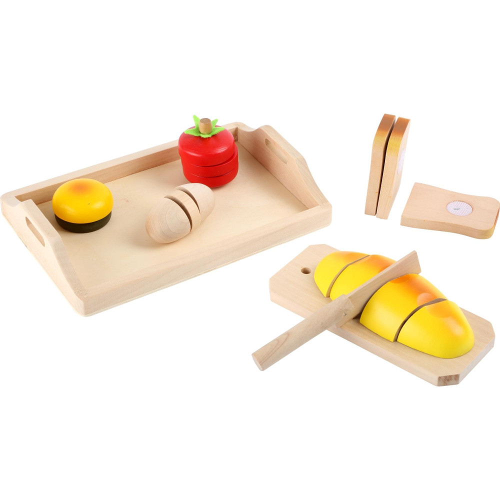 Dřevěné potraviny na suchý zip včetně dřevěného nože a desky na krájení.Německá firma Legler zaměřená na výrobu kvalitních dřevěných hraček od roku 1996. Všechny dřevěné hračky značky small foot mají označení CE a jsou vyráběny dle evropské normy pro bezpečnost hraček EN 71. Použité barvy jsou speciálně vyvinuty pro dřevěné hračky a jsou odolné i proti slinám dětí. Dřevo, které se používá pro tyto hračky, většinou pochází z lesnických společností zapojených do zalesňování. To nabízí všem zákazníkům možnost přispět k zachování přirozeně rostoucích lesů. Dřevěné hračky small foot jsou zářivě barevné produkty, které jsou vyrobeny převážně z přírodních surovin - dřeva. Dětem dělají radost od útlého věku, rozvíjí jejich hmatové a smyslové dovednosti. Cílem značky small foot je podporovat duševní a fyzický vývoj dětí.