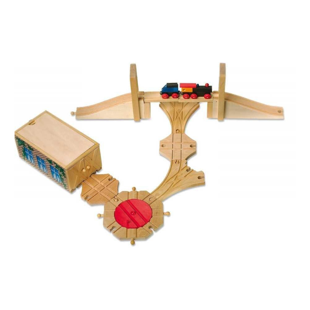 Skládá se z depa s oddělitelnou střechou, železničního mostu a čtyř různých kolejnic. Důležitá hračka pro všechny železniční nadšence.