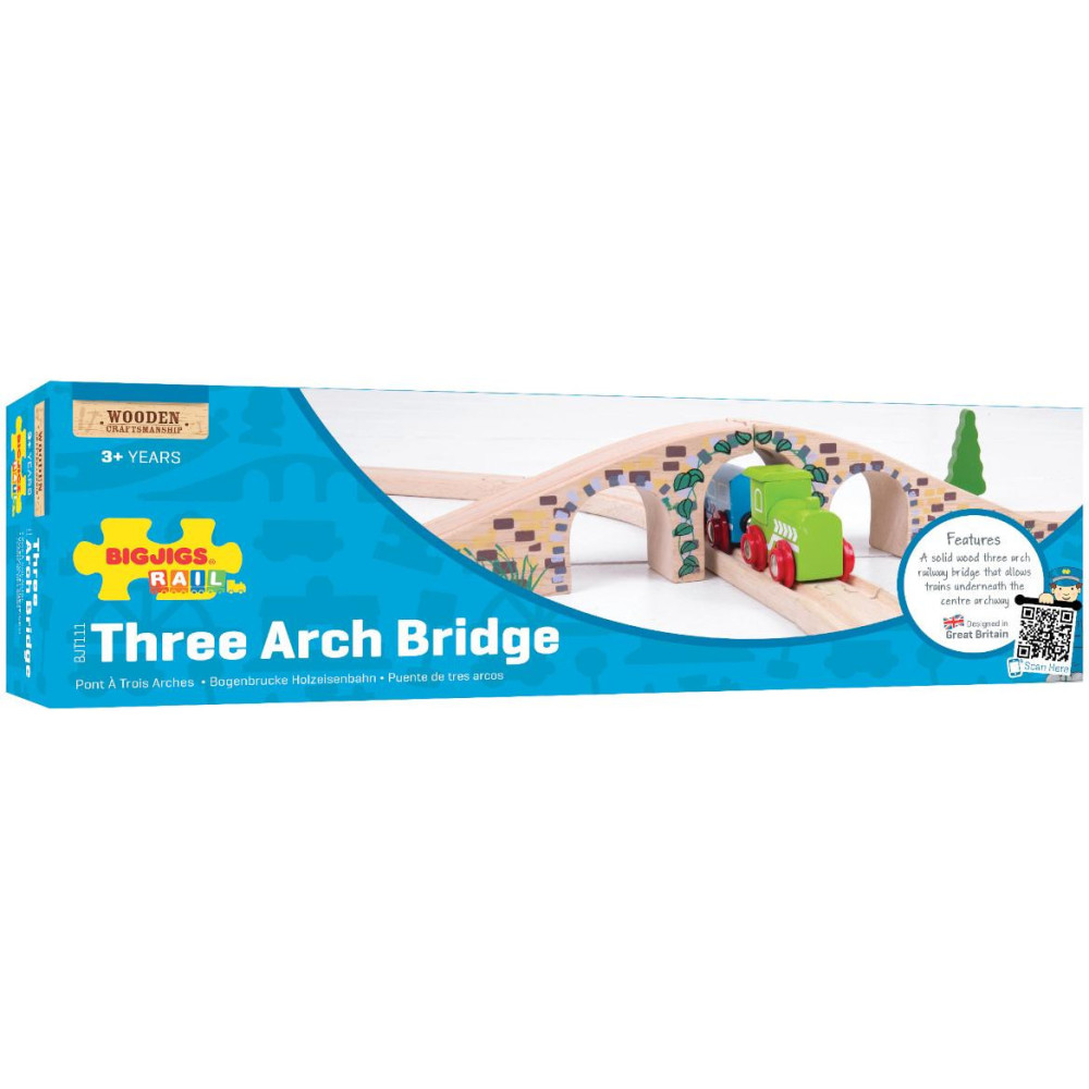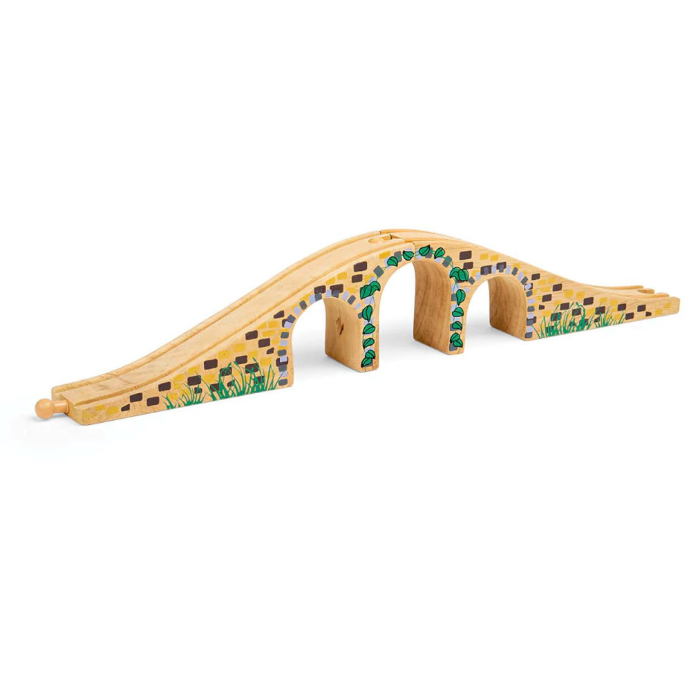 Potřebujete-li překonat vlakem řeku, silnici nebo křížení s jinou dráhou, pak budete potřebovat právě tento troj-obloukový most. S detaily kamenných cihel po jeho stranách a kvalitní povrchovou úpravou je tento most ceněným doplňkem každé dřevěné vláčkodráhy.