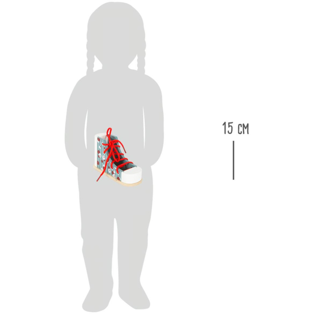 Aha, takže takhle se vážou boty! S touto praktickou dřevěnou botou v moderním designu se děti mohou naučit vázat své tkaničky. Zároveň si procvičí i trpělivost a motorické dovednosti. Stabilní bota, která ustojí všechny pokusy zavazování. Pro děti může být vázání tkaniček opravdu těžké, proto je tato bota ideální učební pomůckou. Vhodné již pro školkové děti.