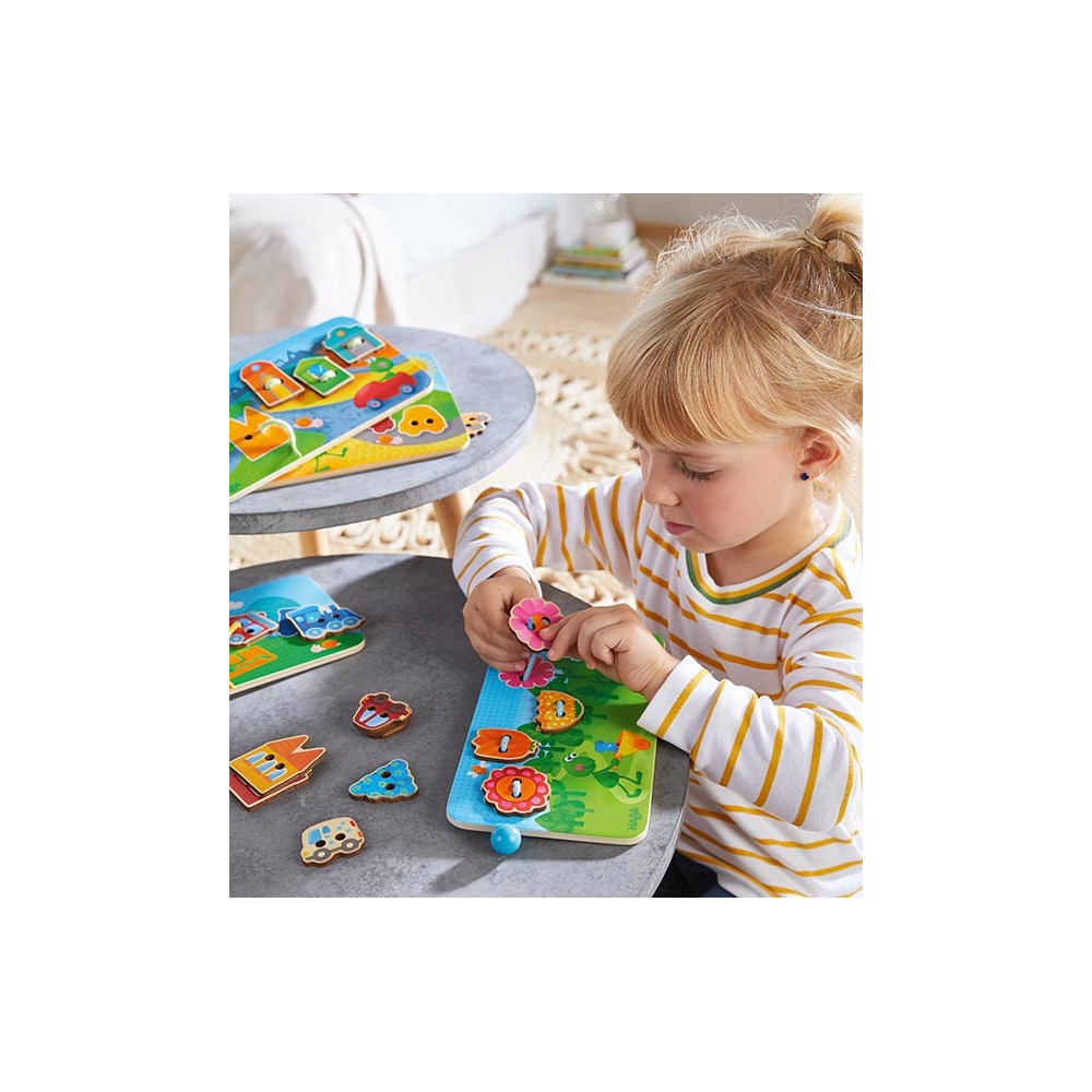 Tato provlékací hra zavede děti na objevitelskou cestu městem i krajinou. Rozmanitá zábava s navlékáním nití se 4 úkolovými deskami.