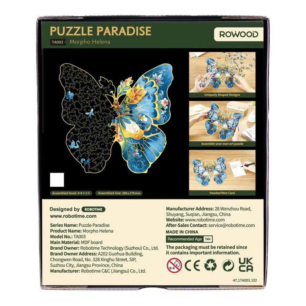 RoboTime Dřevěné puzzle Motýl Morpho Helena