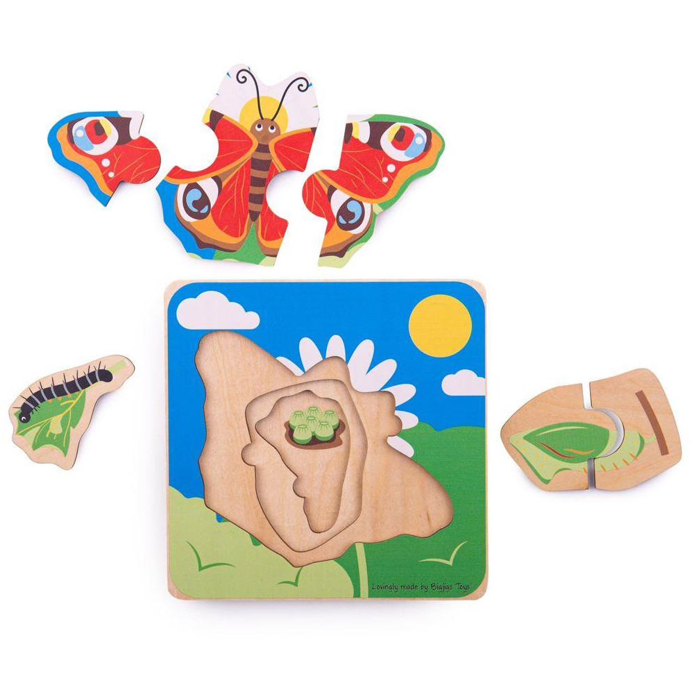 Toto nové vrstvené puzzle je nejen zábavné, ale také vzdělávací! Děti se naučí, jak se kukla změní v motýla. Složte puzzle a objevte tak každý z vývojových cyklů. Puzzle má 4 vrstvy a je vhodné od 2 let. Vyrobeno z kvalitních materiálů ze zodpovědných zdrojů. Splňuje evropské bezpečnostní standardy.