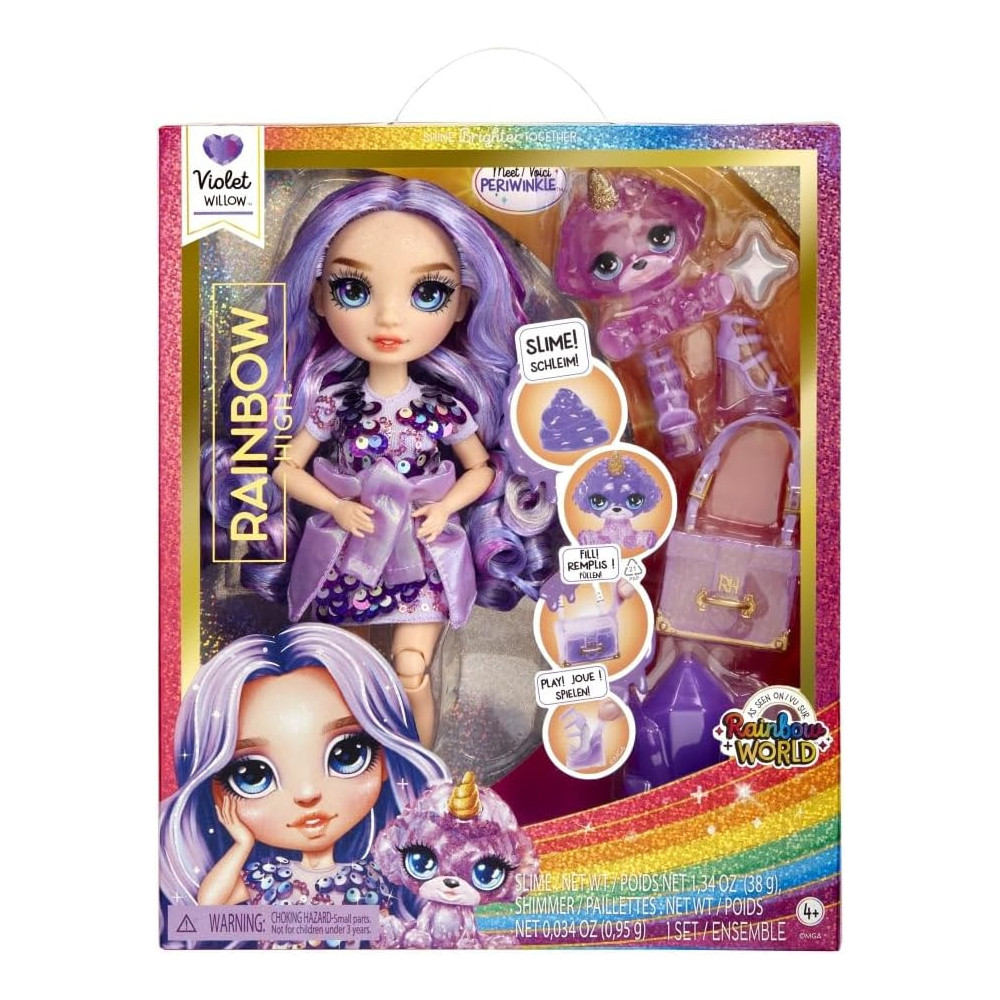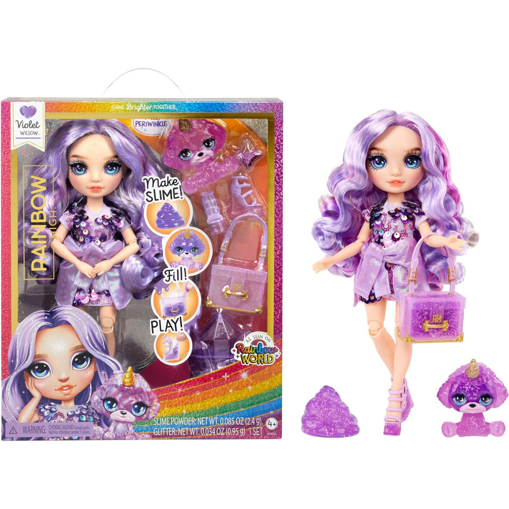Rainbow High Fashion panenka se slizem a domácím mazlíčkem - Violet Willow.