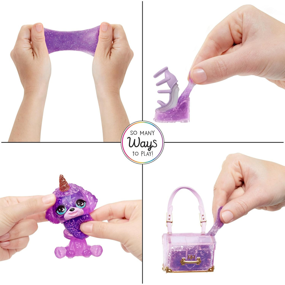 Objevuj svou novou Rainbow High a hraj si s ní magickým způsobem. Panenka se dodává se svým roztomilým zvířátkem a doplňky. Vyrobit si můžeš sliz, do kterého nasypeš třpytky. Pokud chceš změnit barvu svého miláčka, naplň hlavu zvířátka slizem. Nebo změň barvu bot nebo kabelky. Balení obsahuje panenku, zvířátko s rohem, boty, kabelku, třpytky a sliz (38 g).