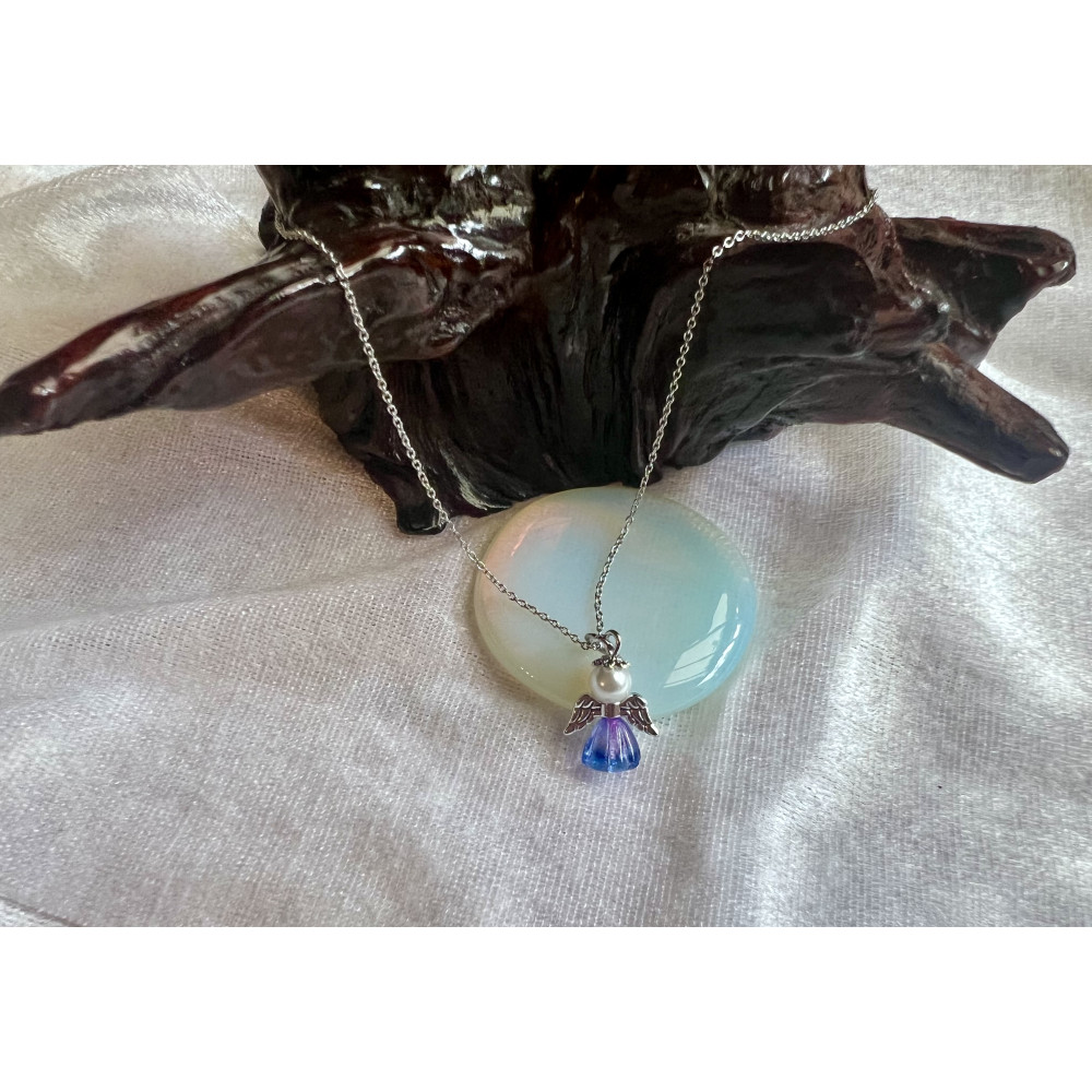 Alada beauty Náhrdelník / řetízek z nerezové oceli s andílkem Purple Jelly