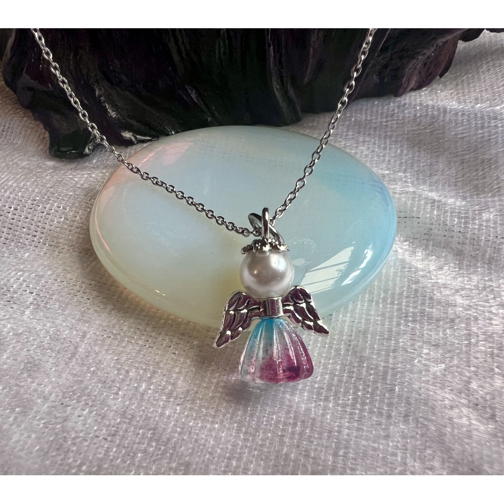 Alada beauty Náhrdelník / řetízek z nerezové oceli s andílkem Pink-blue Jelly. Sukýnka má krásné růžové a modré odlesky.