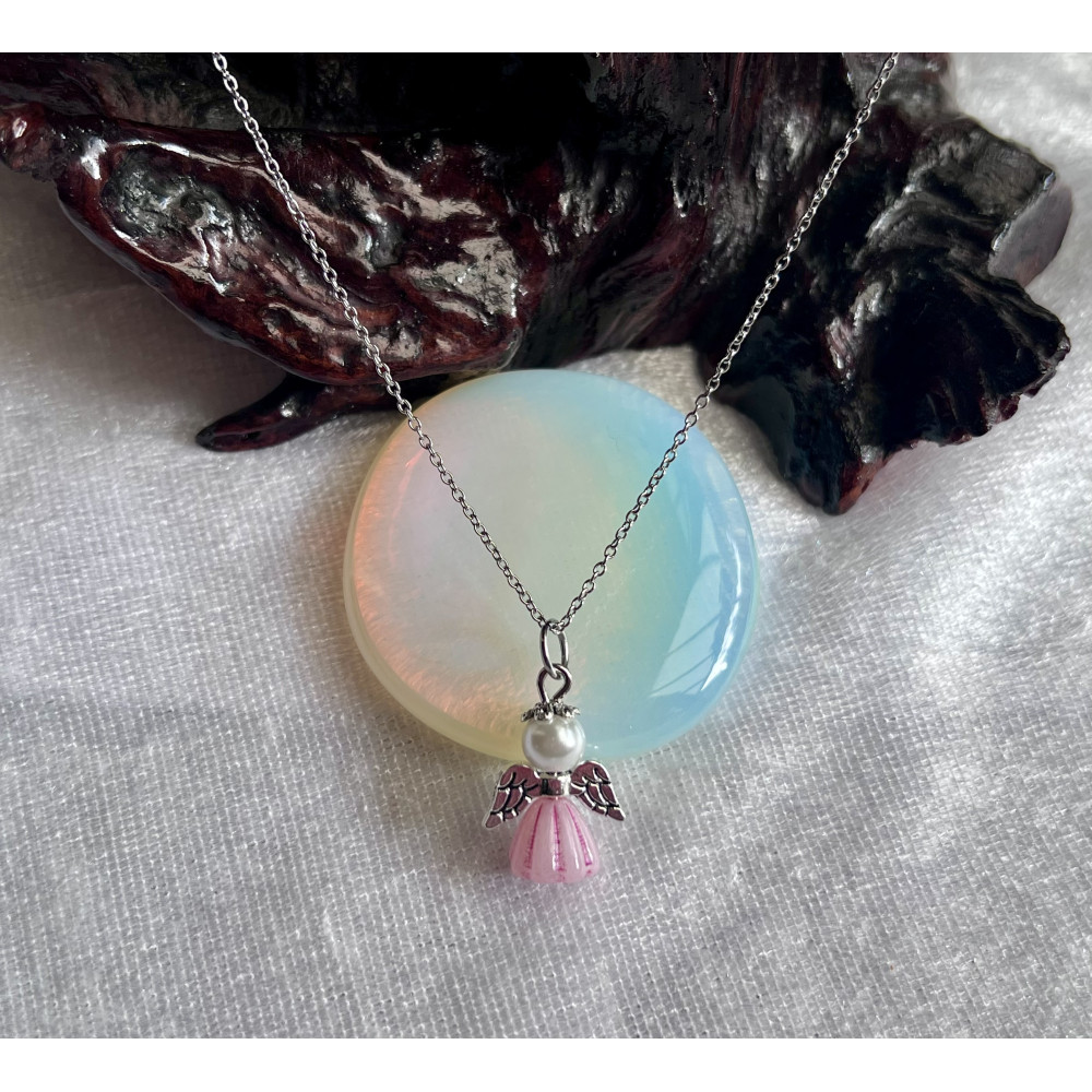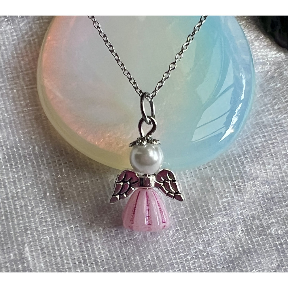 Alada beauty Náhrdelník / řetízek z nerezové oceli s andílkem růžová sukýnka.
