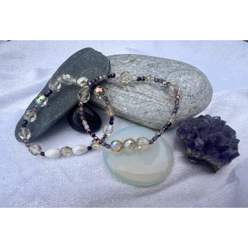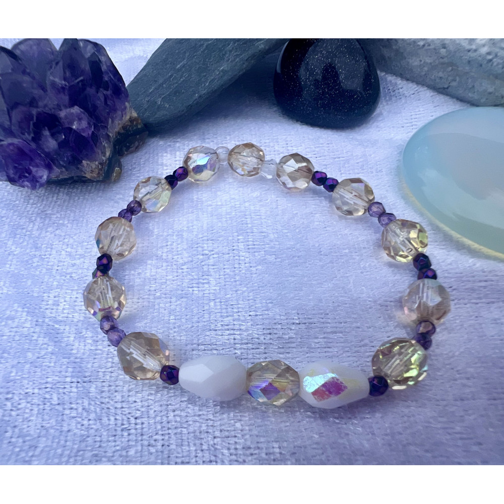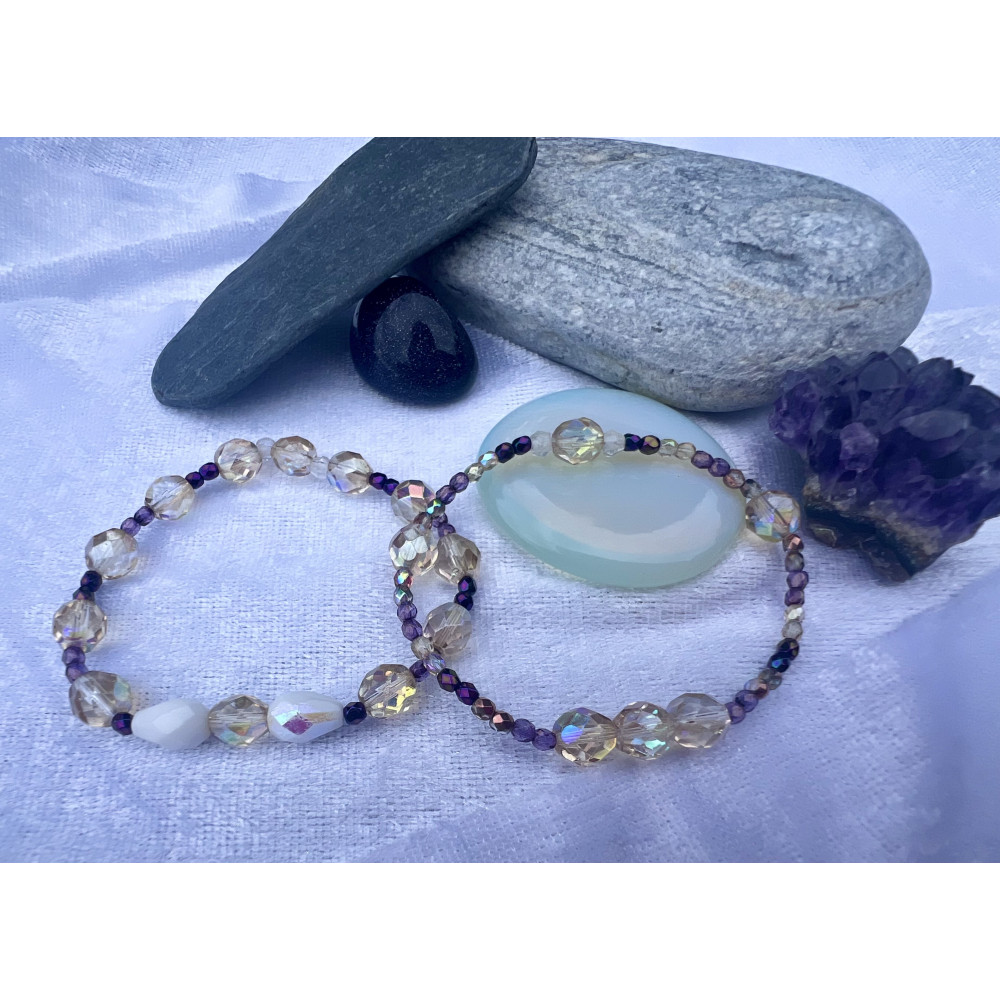 Alada beauty Set 2 náramků Mom and Daughter fialovo-béžový, vyrobený ze skleněných broušených korálků.