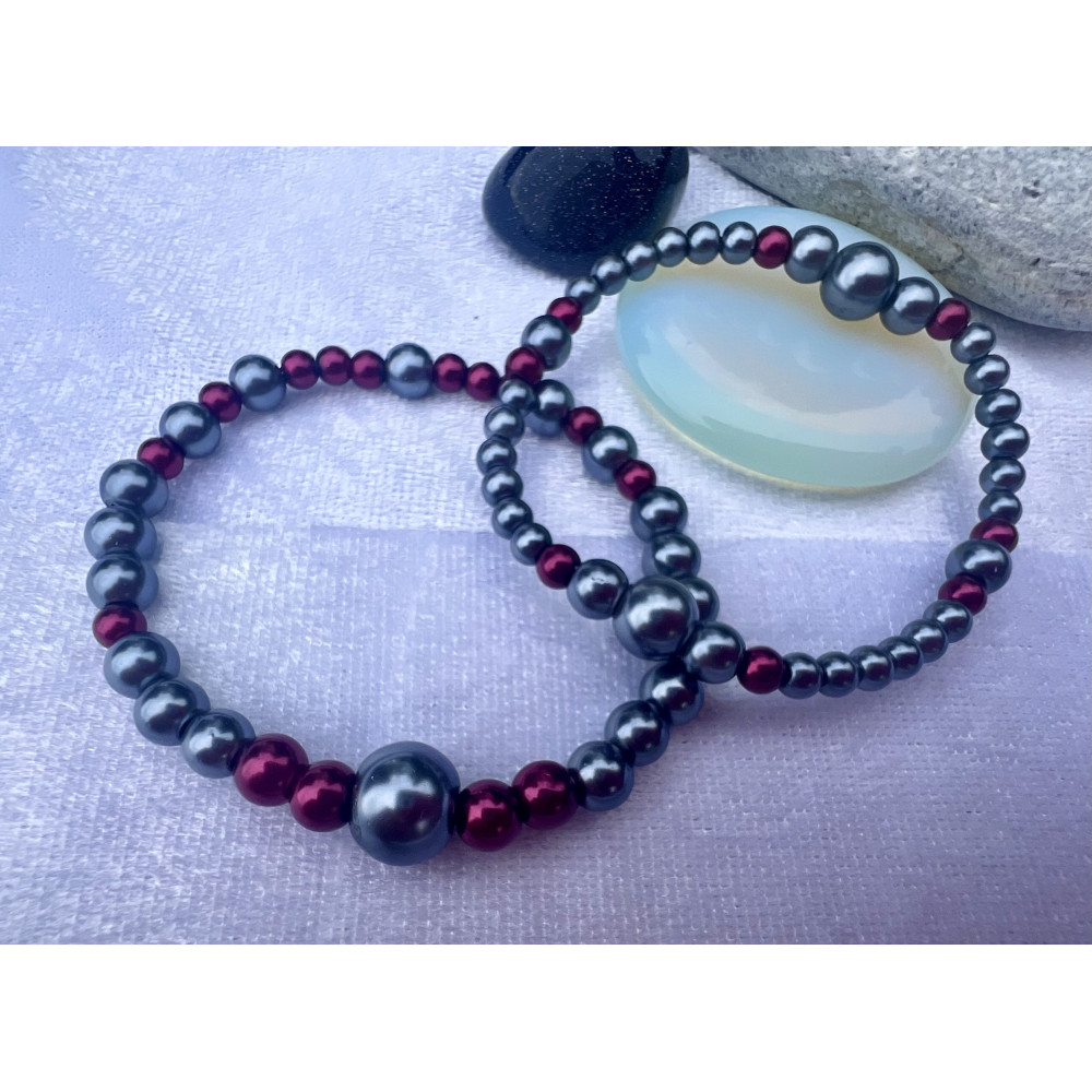 Alada beauty Set 2 perličkových náramků tmavě šedá + bordová.