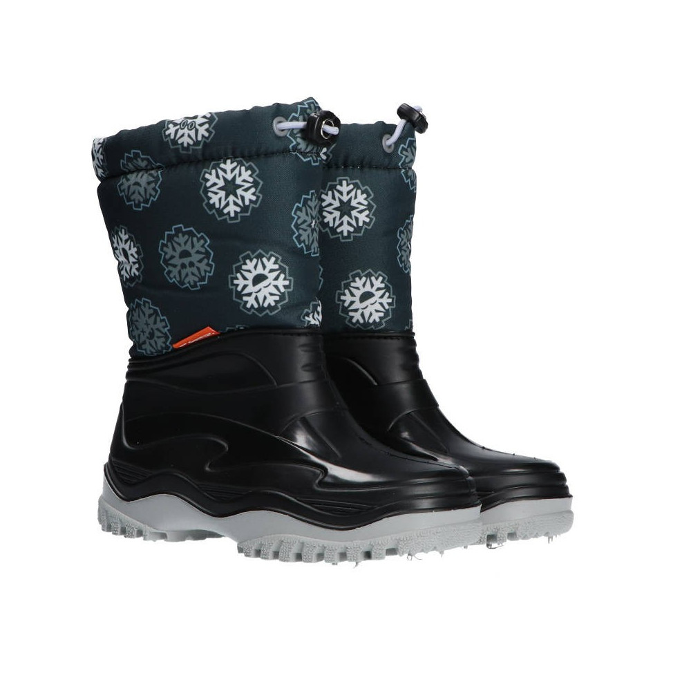 Dětská zimní obuv Demar PICO LIGHT je vhodná do zimního počasí. Barva sněhulí je černá s motivem vločky. Zimní obuv je velice teplá a lehká. Nepromokavá spodní část je vyrobena z PVC, vrchní díl z odolné textilie. Zateplení ze syntetického materiálu. Možnost zatažení svršku tkaničkou proti padání sněhu do obuvi. Mají hrubší protiskluzovou podrážku zajišťující bezpečnost chůze. Vyrobeno v EU.