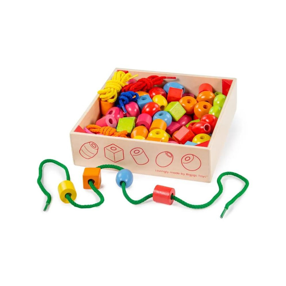 Bigjigs Toys Dřevěné navlékací korálky v dóze