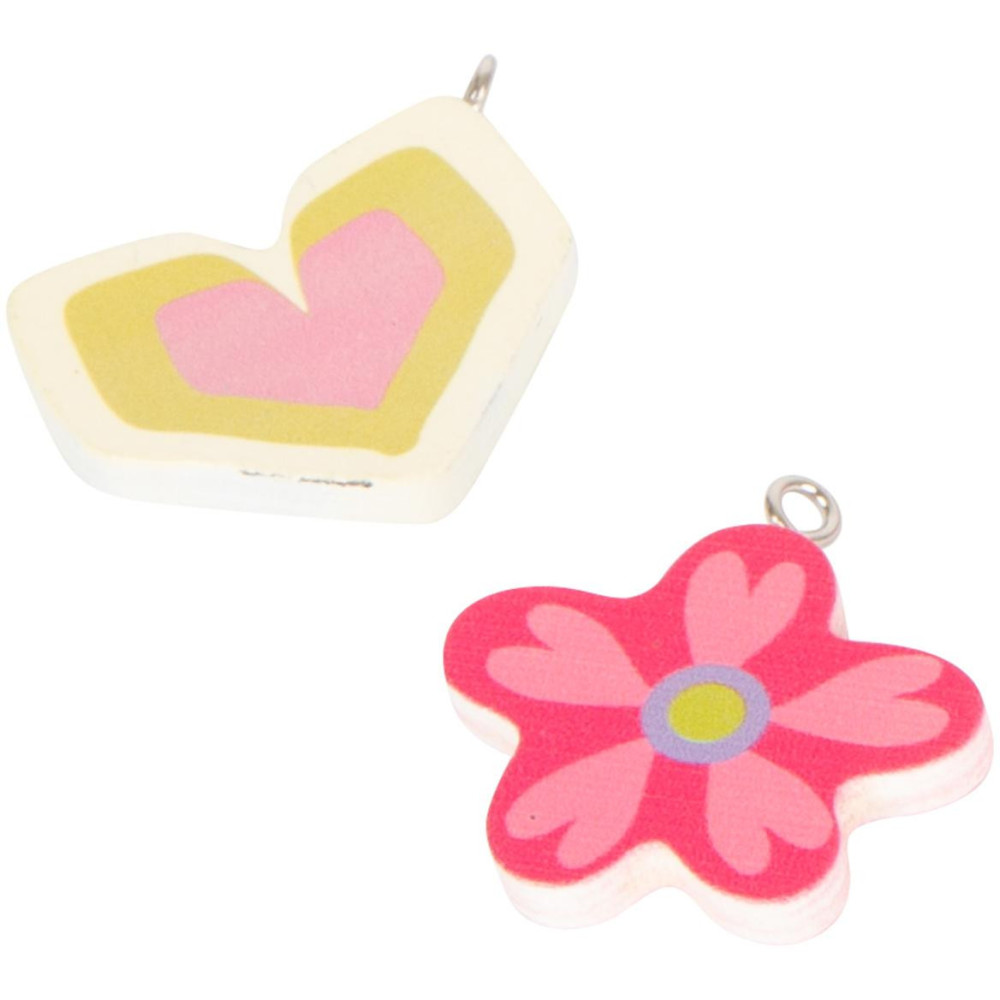 Vyrobte si své šperky s touto sadou korálků v pěti různých barvách a tvarech. Korálkový set doplňují tři přívěsky s různými motivy v hravém designu a tři barevně sladěné šňůry. Vše je uloženo v dřevěné krabici. Navlékáním korálků je podporována jemná motorika dětí.