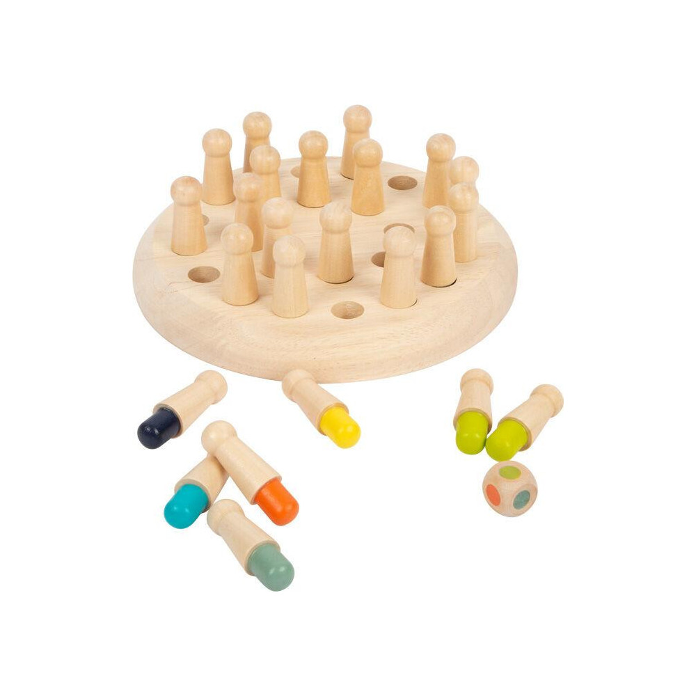 Barevné pexeso pro 2 až 4 hráče, kostka určuje, kterou barvu musíte najít. Pro zjednodušení hry hrajte bez kostky. Zábavná hra, která trénuje paměť všech členů rodiny. Dílky mají 6 různých barev, hračka tak trénuje jejich rozpoznávání. Hravou formou si děti také procvičí soustředěnost, pamět a jemnou motoriku. Vysoce kvalitní hračka z přírodního neošetřeného dřeva s pevnou konstrukcí.