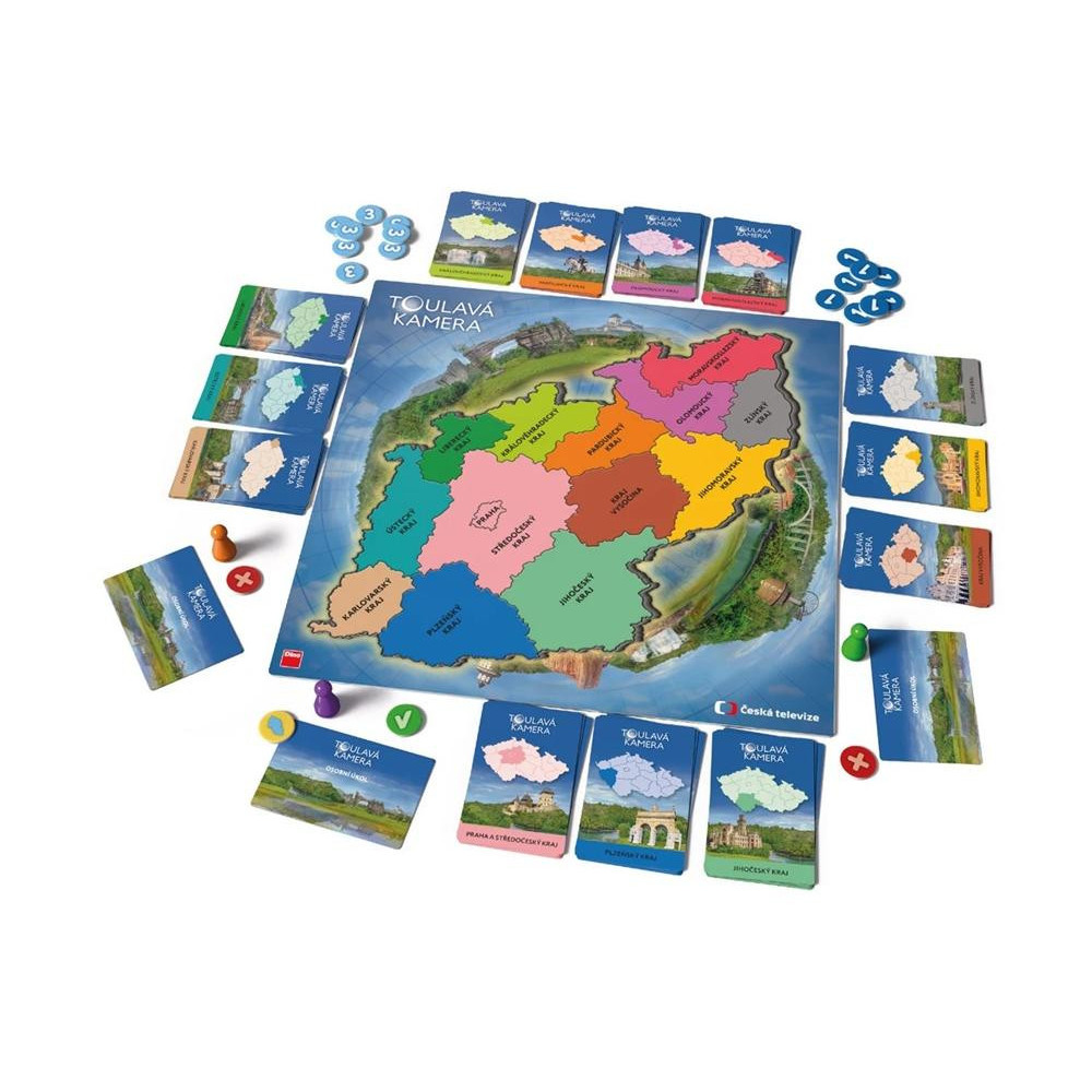 Vydejte se na fascinující cestu po naší krásné vlasti! Díky rodinné hře inspirované oblíbeným pořadem České televize Toulavá kamera si připomenete nejzajímavější a nejkrásnější místa, která jste s Toulavou kamerou navštívili. Poměřte své vědomosti s ostatními hráči. K tomu, abyste vyhráli, potřebujete také dobrý odhad spoluhráčů, taktiku a trošku pověstného štěstí.