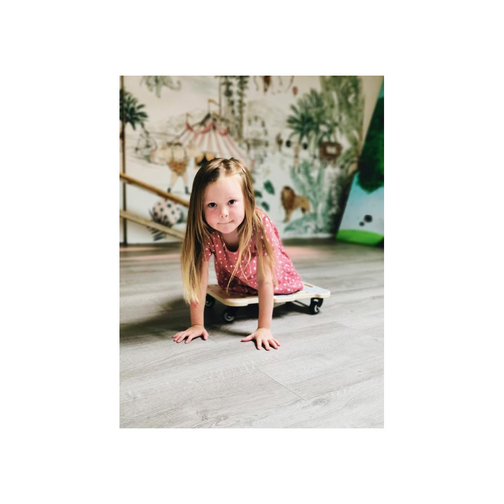 Robustní dřevěné balanční prkno, na kterém můžete sedět, klečet nebo ležet. Najdete na něm otvor, kterým můžete provléct lano, díky postranním kolečkům se jím jednoduše zatáčí. Odsazení kolem otvorů ochrání ruce při držení. Perfektně se hodí k ostatním hračkám z produktové série "Adventure". Balanční prkno trénuje rovnováhu, sílu a vytrvalost. Kolečka jsou pogumovaná, zajišťují tichou a pro podlahu bezpečnou jízdu. Vhodné také pro terapeutické účely. Jednoduchý design a tvar, mnoho přírodního dřeva, bude se hodit do každého pokojíčku.