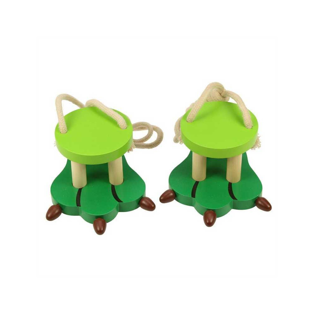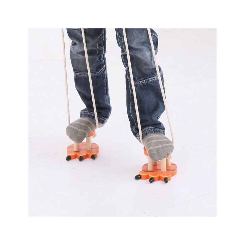 Tyto lehké dřevěné chodící krokodýlí nohy jsou pestrobarevné a jsou určeny pro dětské nohy. Stoupni na krokodýlí nohy, chytni provázky do rukou a vykroč!