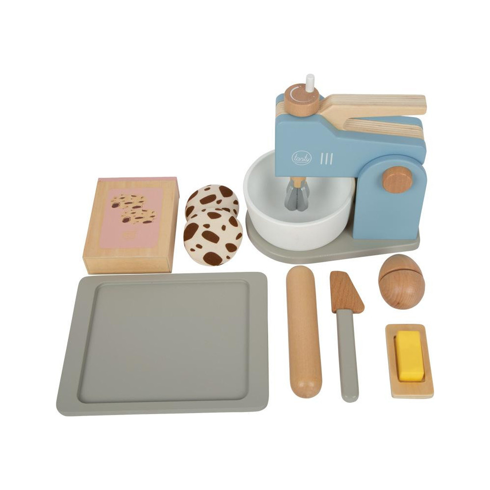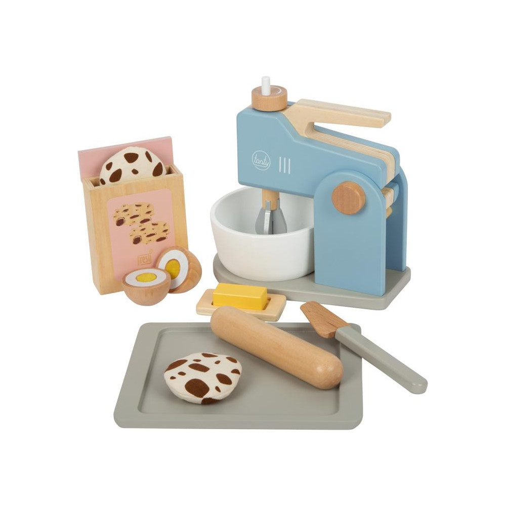 S tímto dřevěným kuchyňským robotem s příslušenstvím si malí pekaři a pekařky užijí mnoho zábavy. Ruční mixér lze od robota oddělit, hračka má pěknou modrou a bílou barvu, také ale mnoho přírodního dřeva. V balení najdete také krabici s pečící směsí, která má uzávěr na gumičku, je bezpečná pro děti. Podle obrázkového receptu v krabici můžete upéct vlastní dobroty. Dále v balení najdete také textilní sušenky, dřevěné máslo, vejce na suchý zip, mísu, váleček, stěrku, plech na pečení. Tato sada má barevný design kompatibilní s dalšími produkty řady Tasty od Small Foot, například Dřevěnou kuchyňkou LE12216.