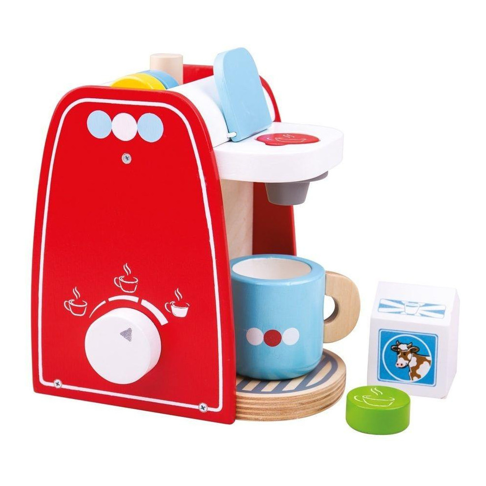 Kávovar pro vaše dítka - přesně takový, jaký používají máma s tátou. Ideální pro realistickou hru. Umístěte kávovou kapsli do kávovaru a otočte spínačem pro přípravu dokonalého šálku kávy. Tato realistická herní sada obsahuje 4 dřevěné kávové kapsle, kávovar, hrnek a krabici mléka. Podporuje kreativní a nápadité hraní rolí. Vyrobeno z vysoce kvalitních, zodpovědně získaných materiálů. Splňuje aktuální evropské bezpečnostní normy.