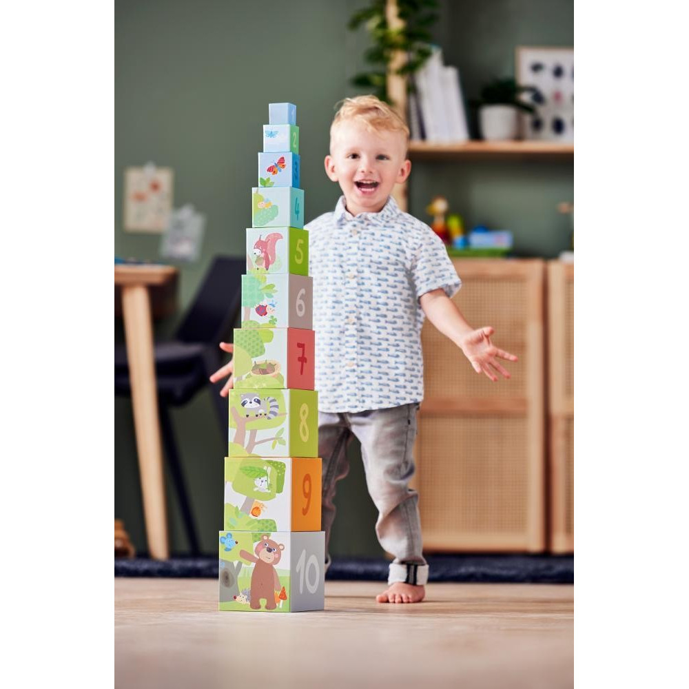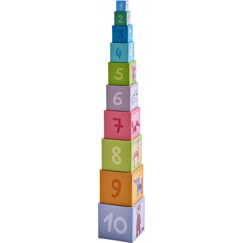 Skladacia pyramída štvorcového tvaru je krásne ilustrovaná obrázkami lesných zvieratiek. Na vrchu každého dielu je číslo od 1 po 10. Hračka umožňuje mnoho herných variantov - stavanie na seba, stohovanie dovnútra a vykladanie pyramídy, ukladanie podľa veľkosti na seba alebo vedľa seba. Ukladanie podľa čísel na seba alebo vedľa seba, vyberanie konkrétnych dielov (najväčší/najmenší, s číslom 5 a pod.) a mnoho iných. Pyramída rozvíja u detí jemnú motoriku, učí ich logickému mysleniu a mnohým zručnostiam. Je vhodná pre deti od 1 roka, pričom zabaví aj 5 ročné dieťa, ktoré sa práve učí usporiadavať veci podľa veľkosti alebo rozpoznávať čísla a ich poradie do 10. Hračka obsahuje 10 okrúhlych dielikov, ktoré sú stohovateľné do seba. Vhodné pre deti: od 1 roka Rozmer produktu: 13,5 x 13,5 x 90 cm Materiál: pevný kartón