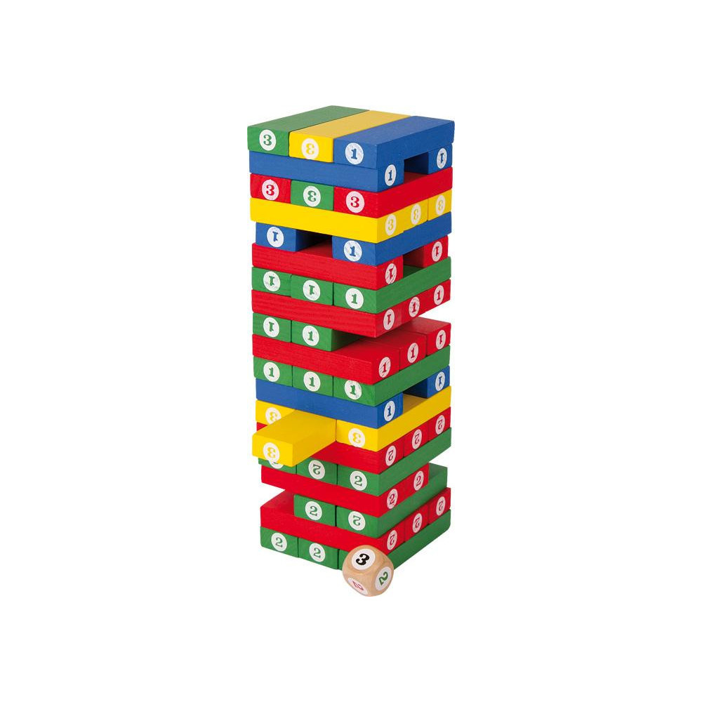 Zábava při stavění věže a napínavá hra s kostkou. Tato dřevěná číselná věž vyžaduje pevnou ruku. Tak jako po vystavění „balanční věže“ jsou vytahovány jednotlivé kostky z věže, ale dávejte přitom pozor. Věž nesmí spadnout! Házecí kostka (1 - 3) určuje u pokročilých hráčů, kterou kostku (1 - 3) musí vytáhnout!