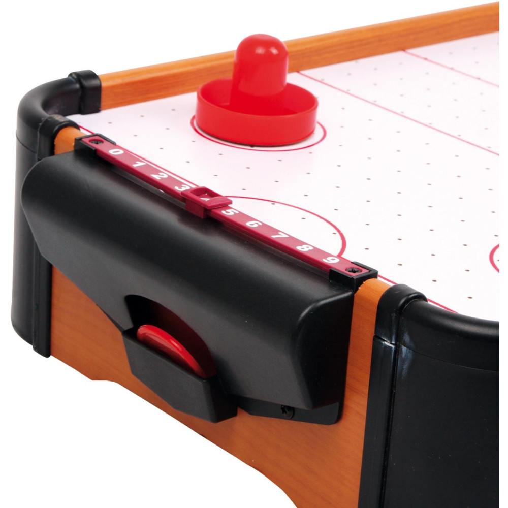 Tento vzdušný hokej je rychlá hra, kterou můžete hrát na malé ploše. Větrák je napájen osmi AA bateriemi, které puk zvednou a ten díky tomu může lítat po herní zóně rychle jako blesk. Tato hra perfektně trénuje motoriku a koordinaci ruka-oko. Stolní Air Hockey můžete postavit kamkoliv a po dohrání jej jednoduše vrátíte zpět do skříně, abyste ušetřili místo.
