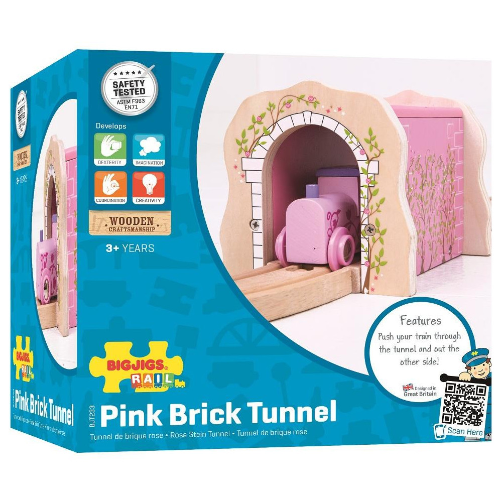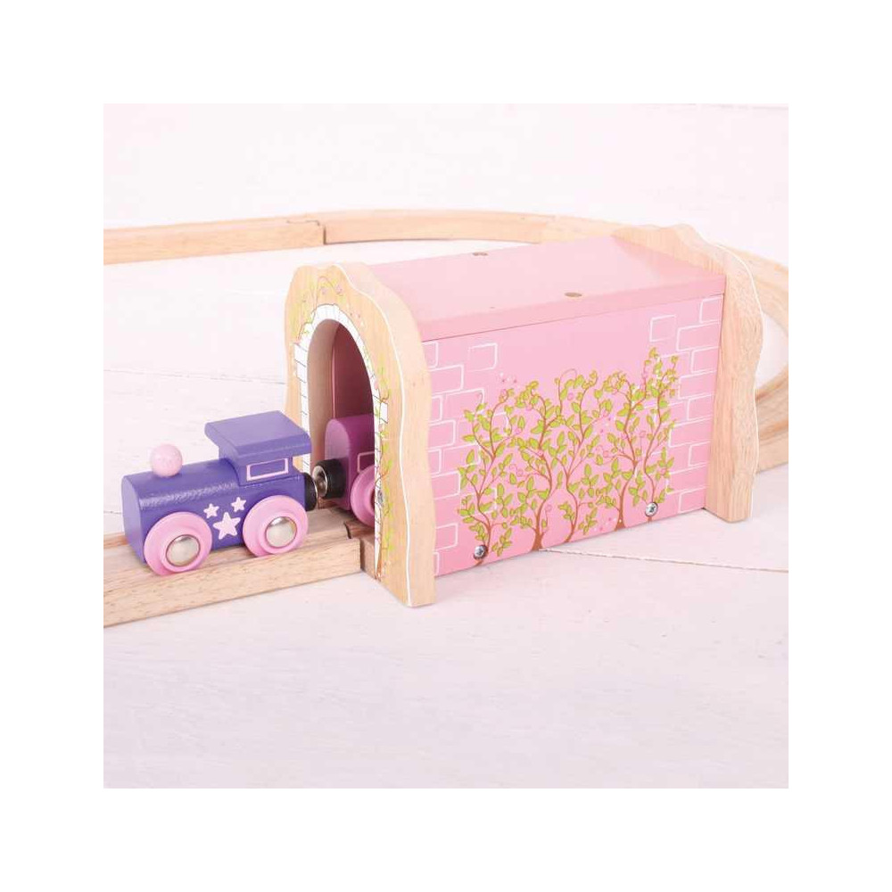 Dřevěný růžový železniční tunel s vysoce kvalitním povrchem je základním kamenem a originálním rozšířením každé vláčkodráhy.