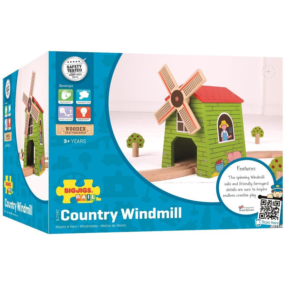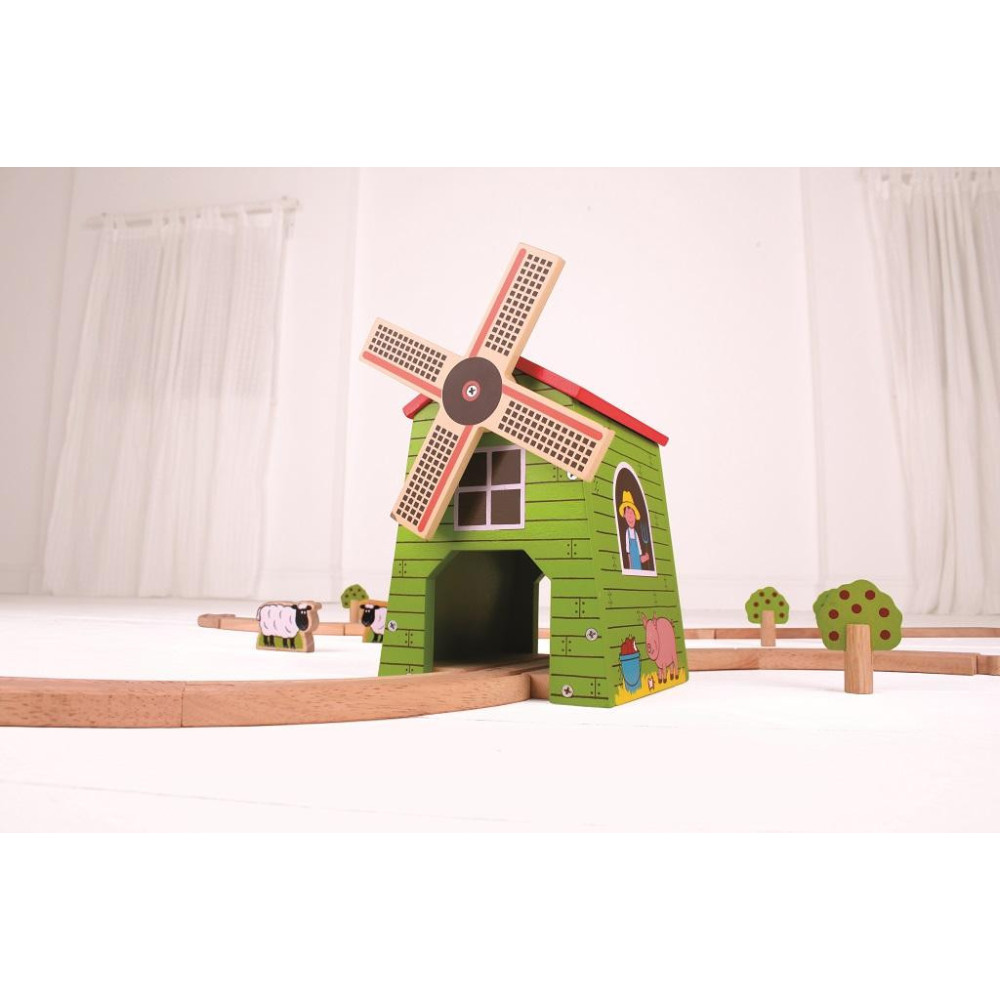 Malé železniční nadšence jistě potěší průjezd svými vlaky skrz větrný mlýn v průběhu jejich železničního dobrodružství. Lopatky mlýnu jsou pohyblivé.