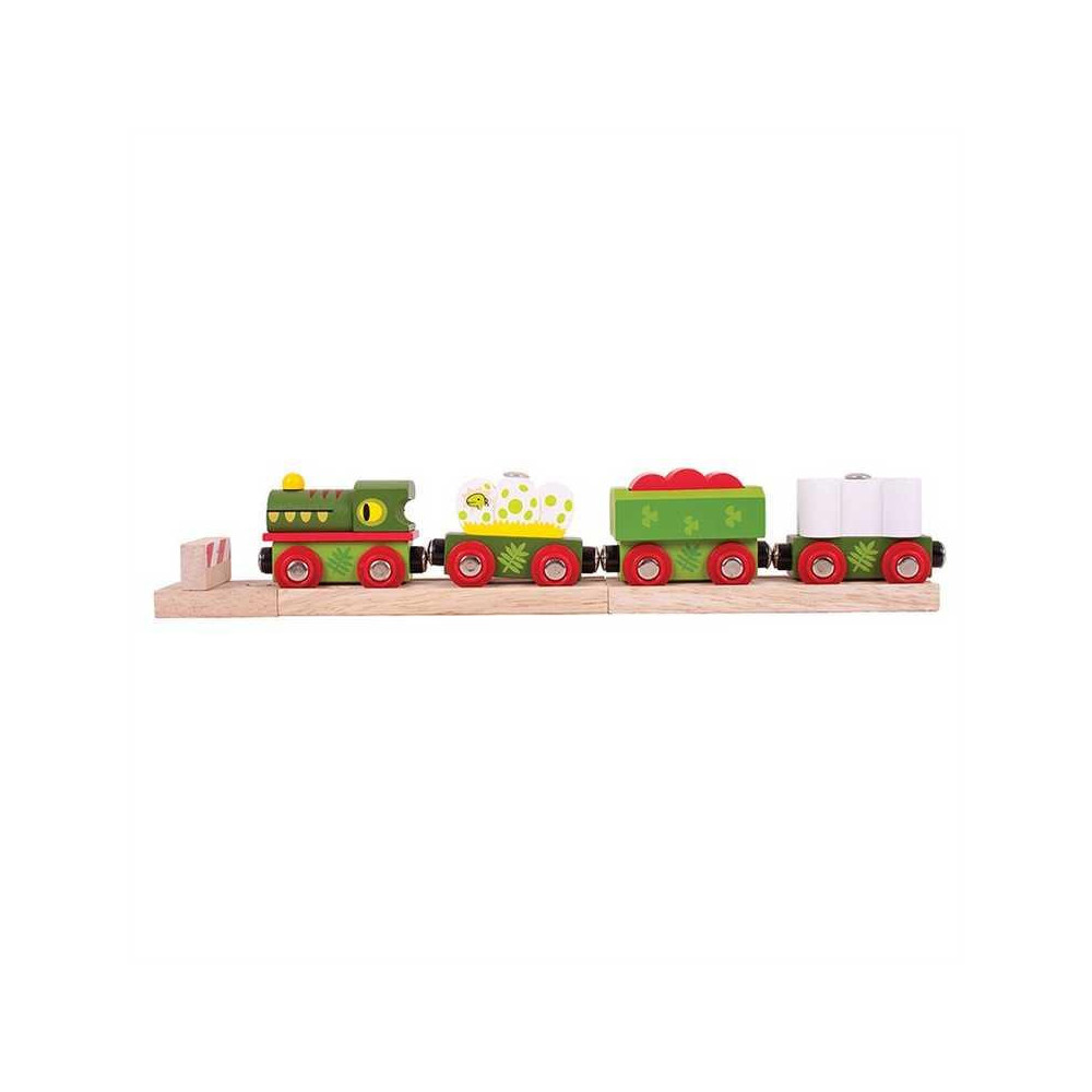 Děti budou milovat tento jasný a veselý set dinosauřího vlaku, který zahrnuje tři vagónky, kolejnice a chytrou lokomotivu. Magnetická spojka vagónků také znamená, že mohou být snadno propojeny s dalšími kusy.