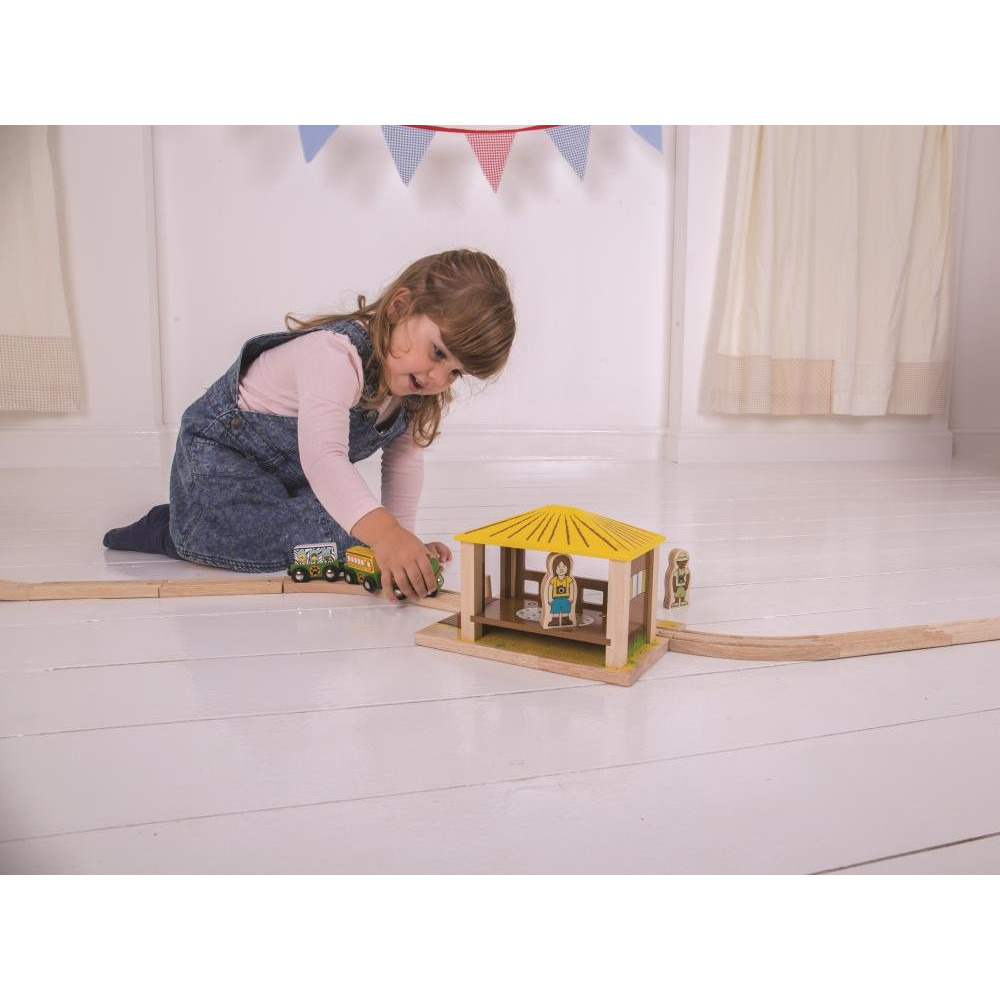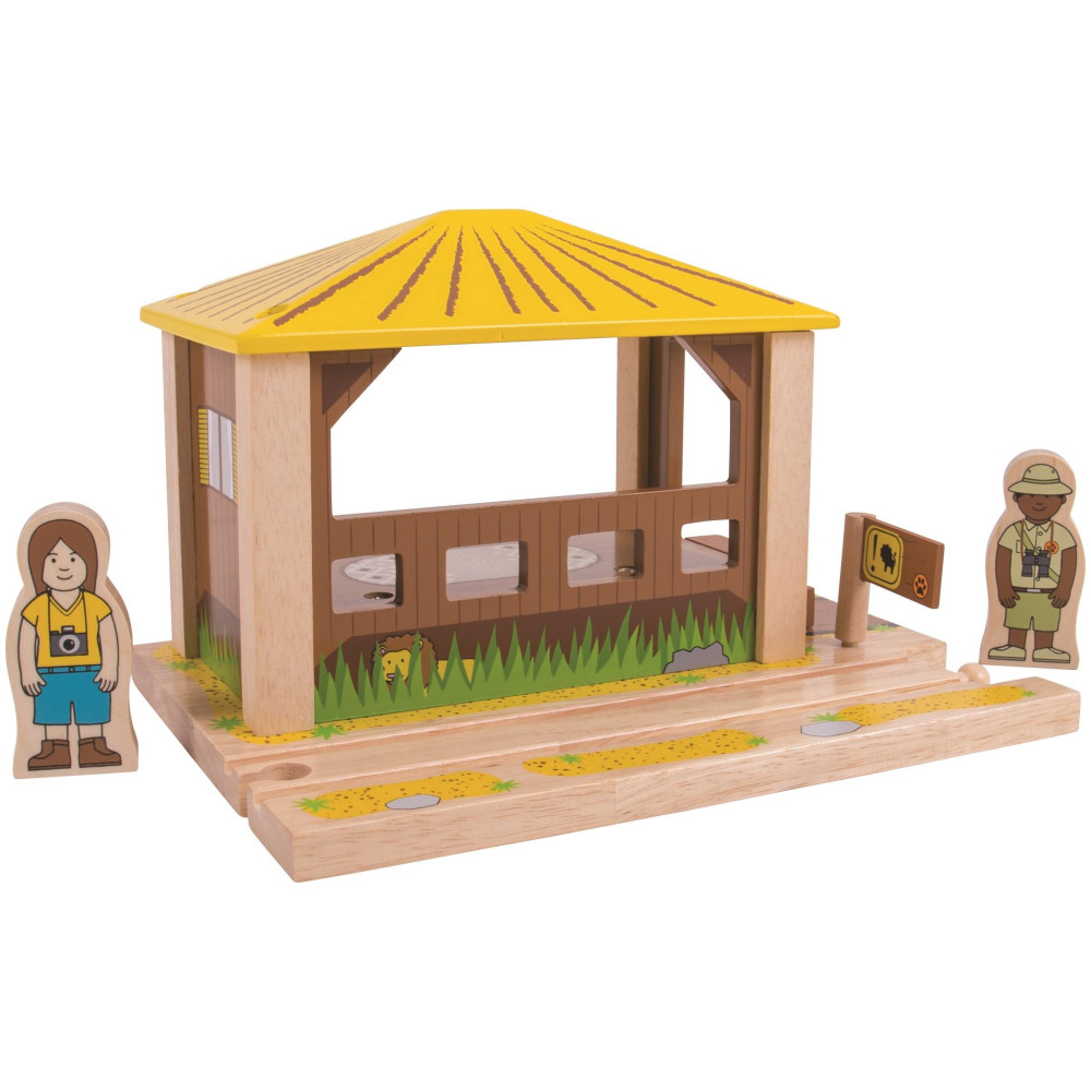 Zastavte se v Safari základně, abyste si dali pozor na některá divoká zvířata, která se toulají kolem! Která zvířata můžete dnes pozorovat? Krokodýl? Opice? Žirafa? Hop zpět do vlaku, ať můžete pokračovat v poznávání! Provozovatelé Safari musí kontrolovat překážku umožňující jízdu vlaků. Zábavný doplněk k dřevěné sadě vlaků a skvělý způsob rozšíření Safari vláčkodráhy (BJT069). Snadno se spojuje s dalšími dřevěnými kolejemi a příslušenstvím. Většina ostatních dřevěných železničních značek je kompatibilní s Bigjigs Rail. Vyrobeno z vysoce kvalitních, zodpovědně dodávaných materiálů. Odpovídá současným evropským bezpečnostním normám. Skládá se ze 4 dílků.Anglická značka Bigjigs byla založena roku 1985 a zpočátku se zabývala výrobou pouze dřevěných puzzlí. Majitelé vyráběli vše ručně s láskou v malém zahradním domku, své výrobky prodávali na trhu. Spokojení zákazníci výrobce motivovali k mnoha dalším nápadům a rozšíření nabídky o další dřevěné hračky. Přibylo zasílání poštou a prodej přes katalog. Spokojenost a věhlas značky rostla, takže následoval velkoobchodní prodej a pro udržení výrobních cen přesun a rozšíření výroby na východ. Nové značky kvalitních a nápaditých hraček si v Anglii všimly další velké prodejní firmy.Dnes Bigjigs hračky zůstávájí ve vlastnictví rodiny s obrovskými sklady v jiho-východní Anglii. Společnost i nadále dodává své hračky široké zákaznické základně ve Velké Británii a západní Evropě podpořená loajálním, oddaným a tvrdě pracujícím týmem zaměstnanců. Veškeré dřevěné hračky BigJigs jsou navržené v Anglii a vyrobené jak tamtéž, tak i ve východní Evropě a jihovýchodní Asii. Kvalita hraček značky BigJigs je testována a odpovídá všem podmínkám pro prodej v EU a USA.