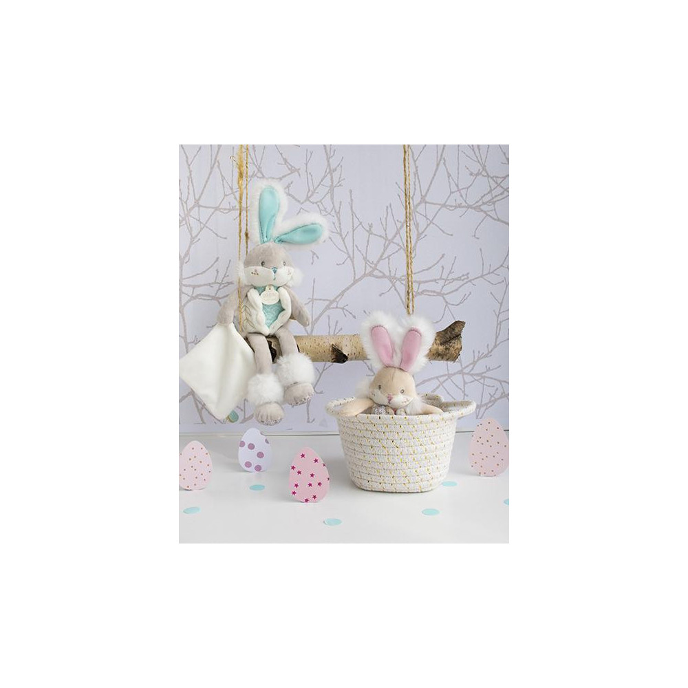 Plyšový zajíček s dečkou doprovází miminko od narození, aby mu přinesl hebkost, pohodlí a objetí. Rozvíjí smysly a zvědavost. Tento rozkošný zajíček bude s jemnými doteky něžně dohlížet na všechny maličké... Je to velmi pěkný dárek k Vánocům nebo k oslavě narození miminka. Prezentováno v nádherné dárkové krabičce s grafikou evokující modernost i luxus.