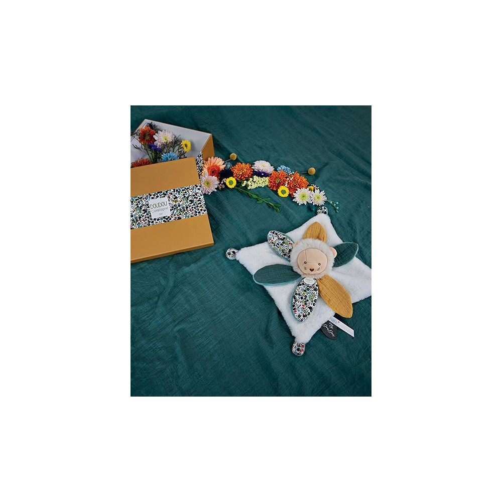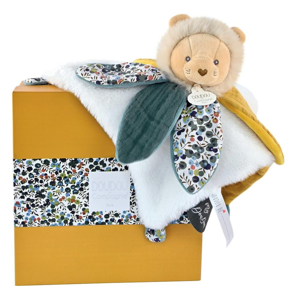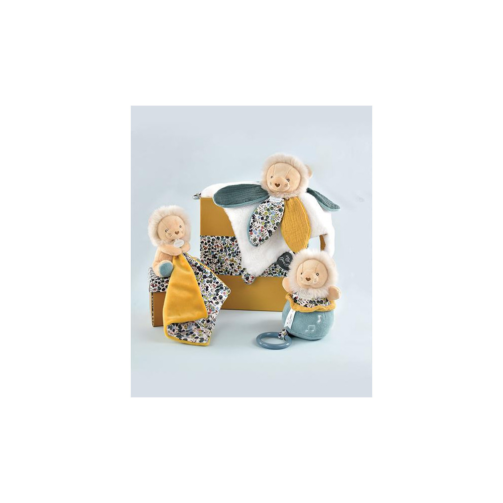 Plyšový lvíček muchláček doprovází miminko od narození, aby mu přinesl hebkost, pohodlí a objetí. Ultra jemná a uklidňující je strana se svěžím bavlněným potiskem vytvořeným našimi stylisty. Lvíček rozvíjí smysly a zvědavost. Je to velmi pěkný dárek k Vánocům nebo k oslavě narození miminka. Je extrémně měkký a příjemný na dotek. Rozkošný lvíček s dečkou je posazen do nádherné dárkové krabičky s grafikou evokující modernost i luxus.