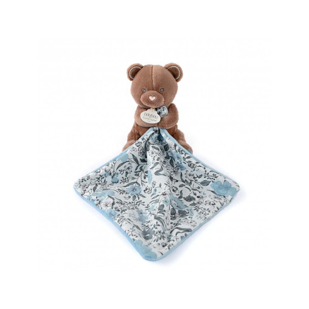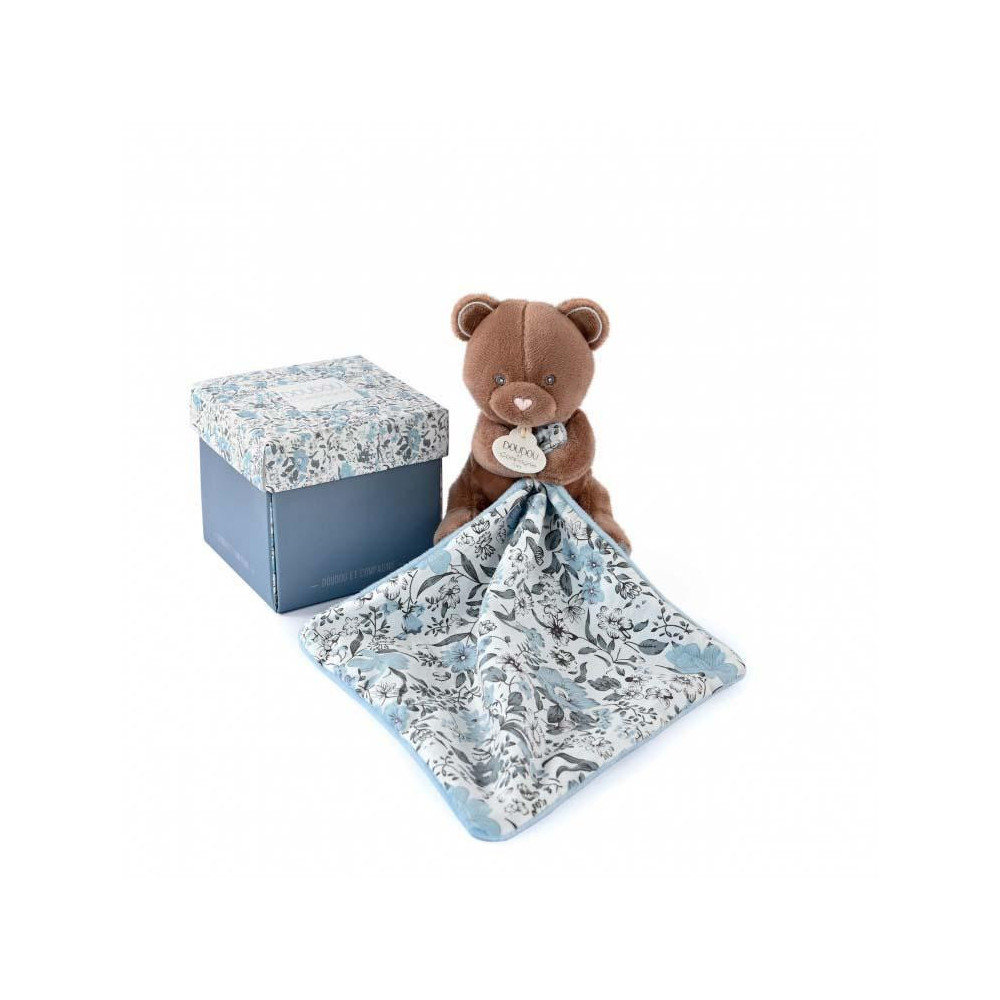 Plyšový medvídek s dečkou doprovází miminko od narození, aby mu přinesla hebkost, pohodlí a objetí. Ultra jemná a uklidňující je strana se svěžím bavlněným potiskem vytvořeným našimi stylisty. Rozvíjí smysly a zvědavost. Je to velmi pěkný dárek k Vánocům nebo k oslavě narození miminka. Prezentováno v pěkně ladící krabičce.