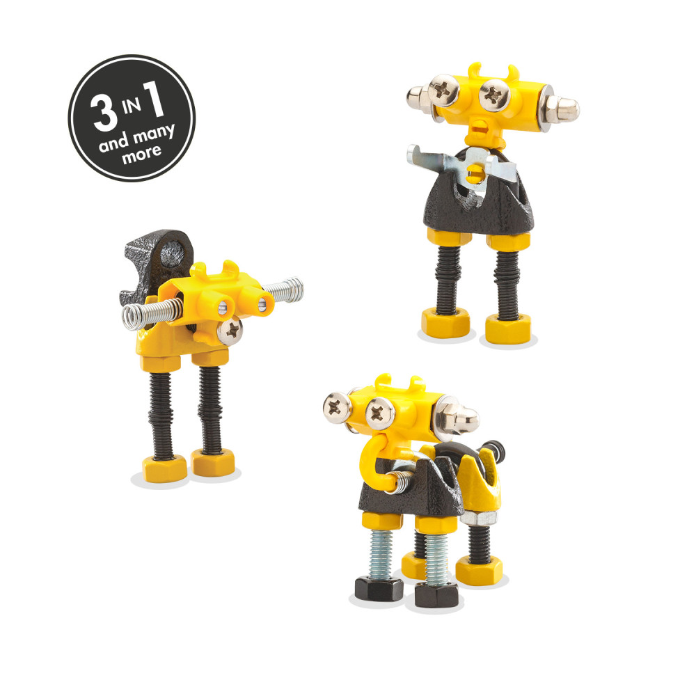 Seznamte se s InfoBitem, zvědavým čtenářem, který se rád učí. Tento robot se sortimentem barevných matic, šroubů a tvarovaných dílů je encyklopedií znalostí. Popusťte uzdu své fantazii. Tato sada umožňuje vytvoření tří modelů s dalšími nekonečnými možnostmi pro vaše vlastní kreativní nápady. Jedná se o hračku, která pomáhá mladým lidem růst v oblastech vědy, technologie, inženýrství, umění a matematiky. Hračky OffBits také podporují rozvoj jemné motoriky, prostorové představivosti, řešení problémů a nápadité hry. Co můžete postavit:Robota infoBit, kuřátkoBit nebo štěněBit plus nekonečné množství jedinečných výtvorů, které můžete postavit pomocí své fantazie. Máte kolem sebe karton, šroubky nebo jiné zábavné materiály? Vylepšujte s předměty každodenní potřeby a vytvořte také své vlastní jedinečné vynálezy. Hlavní vlastnosti: obsahuje nářadí pro sestavení stavebnicekompatibilnost s každodenními předmětyrozvoj kreativity, jemné motoriky i logického myšlenívhodné od šesti let3 v 1návod je součástí