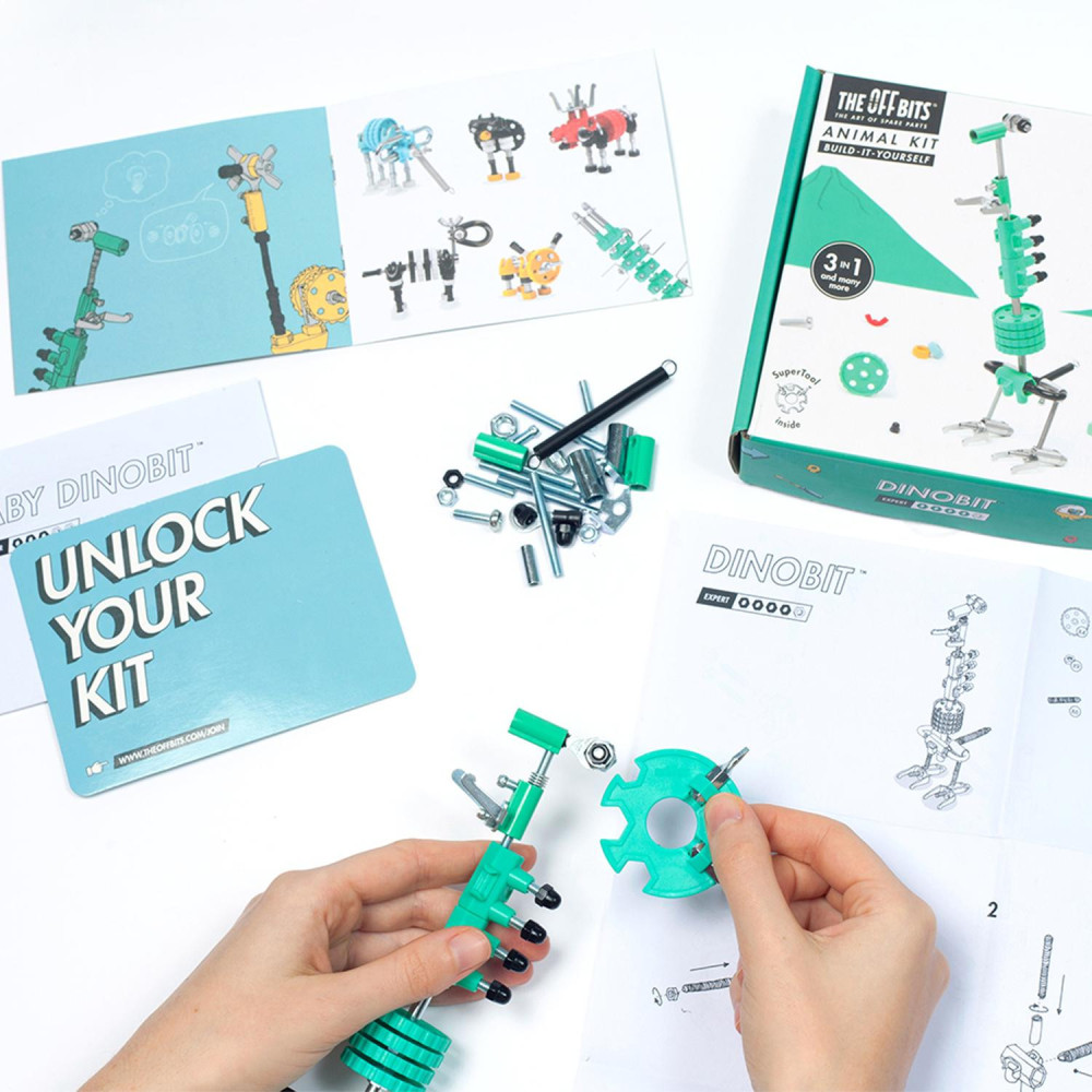 Od hlavy k ocasu! DinoBit je milovník historie. Díky sortimentu barevných matic, šroubů a tvarovaných kousků je tento dinosaurus nelítostně loajální. Popusťte uzdu své fantazii. Tato sada umožňuje vytvoření tří modelů s dalšími nekonečnými možnostmi pro vaše vlastní kreativní nápady. Jedná se o hračku, která pomáhá mladým lidem růst v oblastech vědy, technologie, inženýrství, umění a matematiky. Hračky OffBits také podporují rozvoj jemné motoriky, prostorové představivosti, řešení problémů a nápadité hry. Co můžete postavit:DinosauraBit, dinosauří mláděBit, autoBit 4x4 plus nekonečné množství jedinečných výtvorů, které můžete postavit pomocí své fantazie. Máte kolem sebe karton, šroubky nebo jiné zábavné materiály? Vylepšujte s předměty každodenní potřeby a vytvořte také své vlastní jedinečné vynálezy. Hlavní vlastnosti: obsahuje nářadí pro sestavení stavebnicekompatibilnost s každodenními předmětyrozvoj kreativity, jemné motoriky i logického myšlenívhodné od šesti let3 v 1 Ilustrační foto balení: