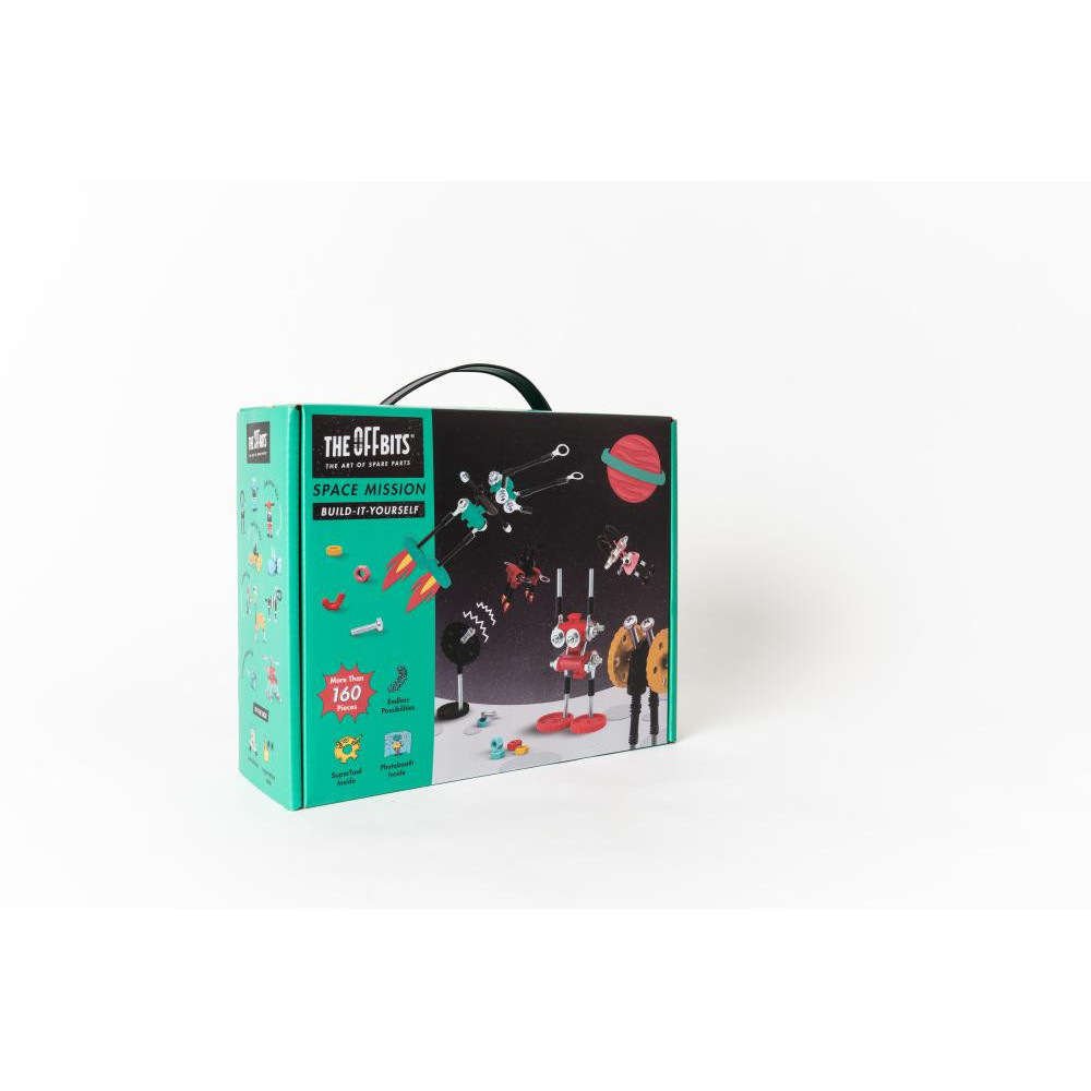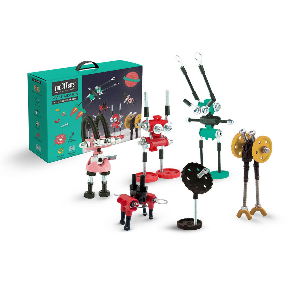 Prozkoumejte vesmír! Cestujte s touto vesmírnou sadou do předaleké galaxie. V balení více než 150 barevných matic, šroubů a tvarovaných kousků, také obsahuje flotilu úžasných průzkumníků. Popusťte uzdu své fantazii. Tato sada umožňuje vytvoření tří modelů s dalšími nekonečnými možnostmi pro vaše vlastní kreativní nápady. Jedná se o hračku, která pomáhá mladým lidem růst v oblastech vědy, technologie, inženýrství, umění a matematiky. Hračky OffBits také podporují rozvoj jemné motoriky, prostorové představivosti, řešení problémů a nápadité hry. Co můžete postavit:Postavte si AstroBit, TechBit, SpikeBit, ParrotBit, AntenaBit a SpaceBit plus nekonečné množství jedinečných výtvorů, které můžete postavit pomocí své fantazie. Máte kolem sebe karton, šroubky nebo jiné zábavné materiály? Vylepšujte s předměty každodenní potřeby a vytvořte také své vlastní jedinečné vynálezy. Hlavní vlastnosti: obsahuje nářadí pro sestavení stavebnicekompatibilnost s každodenními předmětyrozvoj kreativity, jemné motoriky i logického myšlenívhodné od osmi letvíce než 150 dílů