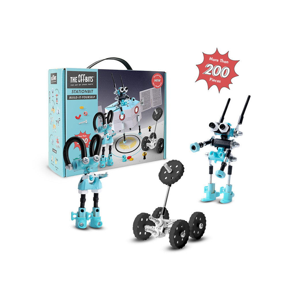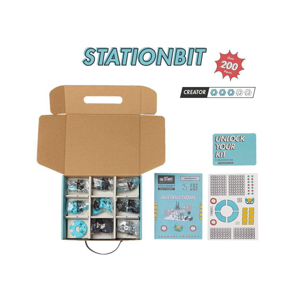 Postavte mezihvězdnou vesmírnou stanici! Prozkoumejte blízké i vzdálené planety se StationBit, který obsahuje více než 200 barevných matic, šroubů, tvarovaných kousků, samolepek a víceúčelové balení s nulovým odpadem, které se promění v součást herního zážitku a stane se vesmírným modulem. Popusťte uzdu své fantazii. Tato sada umožňuje vytvoření tří modelů s dalšími nekonečnými možnostmi pro vaše vlastní kreativní nápady. Jedná se o hračku, která pomáhá mladým lidem růst v oblastech vědy, technologie, inženýrství, umění a matematiky. Hračky OffBits také podporují rozvoj jemné motoriky, prostorové představivosti, řešení problémů a nápadité hry. Co můžete postavit:Astronauty SaturnBit, DroidBit a RoverBit plus nekonečné množství jedinečných výtvorů, které můžete postavit pomocí své fantazie. Máte kolem sebe karton, šroubky nebo jiné zábavné materiály? Vylepšujte s předměty každodenní potřeby a vytvořte také své vlastní jedinečné vynálezy. Hlavní vlastnosti: obsahuje nářadí pro sestavení stavebnicekompatibilnost s každodenními předmětyrozvoj kreativity, jemné motoriky i logického myšlenívhodné od osmi letvíce než 200 dílůvíceúčelové balení