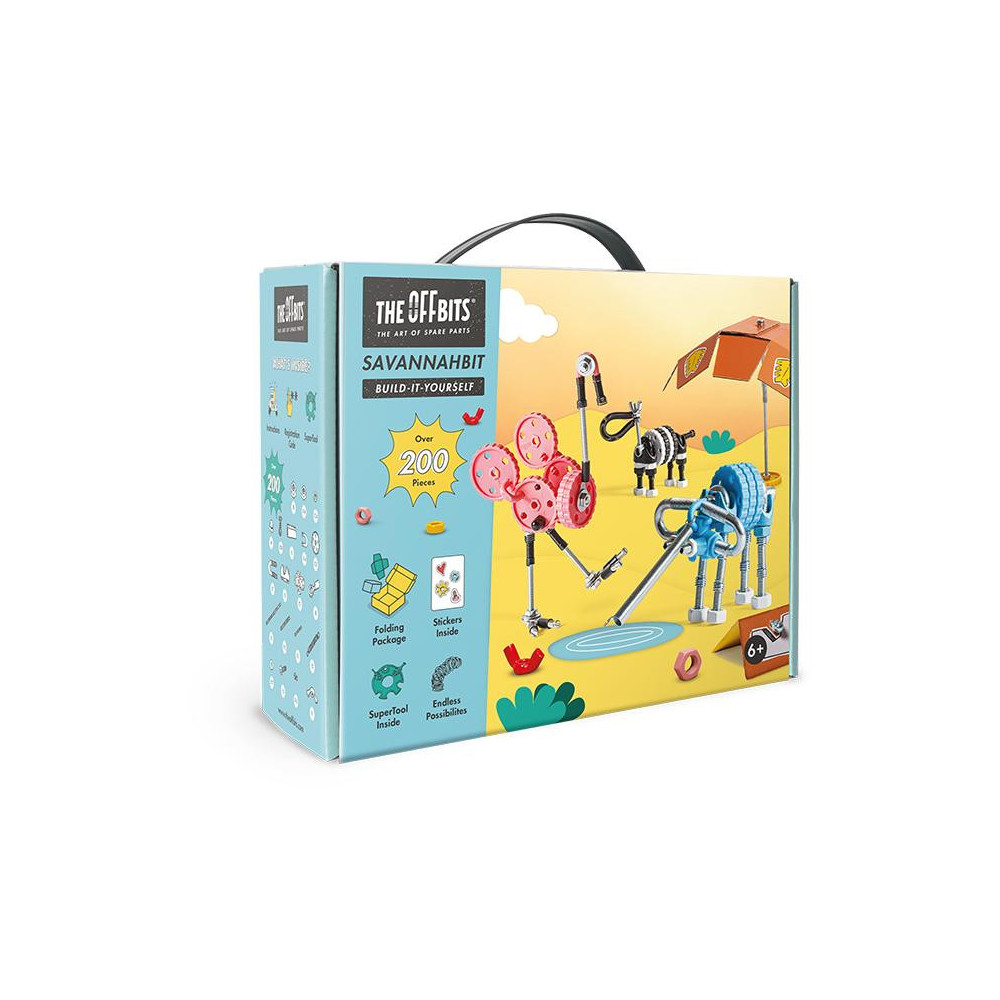 Sestavte divoká zvířata z matic a šroubů a přeměňte karton OffBits na hravou Savanu se stromy a jezery a plnou možností. Sada obsahuje více než 200 barevných matic, šroubů, tvarovaných kousků, samolepek a naše víceúčelové balení s nulovým odpadem, které se promění v součást herního zážitku a stane se savanou plnou života. Popusťte uzdu své fantazii. Tato sada umožňuje vytvoření tří modelů s dalšími nekonečnými možnostmi pro vaše vlastní kreativní nápady. Jedná se o hračku, která pomáhá mladým lidem růst v oblastech vědy, technologie, inženýrství, umění a matematiky. Hračky OffBits také podporují rozvoj jemné motoriky, prostorové představivosti, řešení problémů a nápadité hry. Co můžete postavit:ElephantBit, ZebraBit, FlamingoBit plus nekonečné množství jedinečných výtvorů, které můžete postavit pomocí své fantazie. Máte kolem sebe karton, šroubky nebo jiné zábavné materiály? Vylepšujte s předměty každodenní potřeby a vytvořte také své vlastní jedinečné vynálezy. Hlavní vlastnosti: obsahuje nářadí pro sestavení stavebnicekompatibilnost s každodenními předmětyrozvoj kreativity, jemné motoriky i logického myšlenívhodné od šesti letvíce než 200 dílůobal je součástí herního zážitku