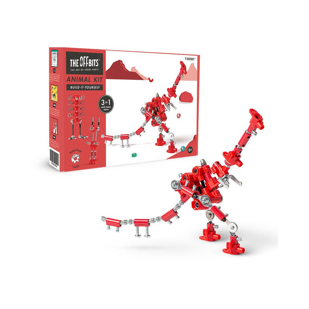Připravte se na dobrodružnou cestu zpět do prehistorické éry s T-rexBitem, jedním z nejmocnějších masožravých dinosaurů, kteří se kdy chodili po povrchu Země! Popusťte uzdu své fantazii. Tato sada umožňuje vytvoření tří modelů s dalšími nekonečnými možnostmi pro vaše vlastní kreativní nápady. Jedná se o hračku, která pomáhá mladým lidem růst v oblastech vědy, technologie, inženýrství, umění a matematiky. Hračky OffBits také podporují rozvoj jemné motoriky, prostorové představivosti, řešení problémů a nápadité hry. Co můžete postavit:TrexBit, CuriousBit, BlockBit plus nekonečné množství jedinečných výtvorů, které můžete postavit pomocí své fantazie. Máte kolem sebe karton, šroubky nebo jiné zábavné materiály? Vylepšujte s předměty každodenní potřeby a vytvořte také své vlastní jedinečné vynálezy. Hlavní vlastnosti: obsahuje nářadí pro sestavení stavebnicekompatibilnost s každodenními předmětyrozvoj kreativity, jemné motoriky i logického myšlenívhodné od osmi let3 v 1 Ilustrační foto balení: