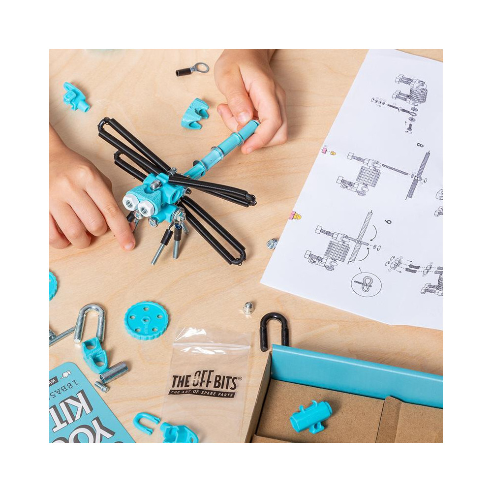 Seznamte se s rychlým a okouzlujícím DragonflyBit. Toto fascinující stvoření se svými čtyřmi velkými křídly létá neuvěřitelnou rychlostí a bez námahy chytá mouchy a komáry. Tento neuvěřitelný hmyz je tvořen řadou barevných matic, šroubů a tvarovaných kousků. Popusťte uzdu své fantazii. Tato sada umožňuje vytvoření tří modelů s dalšími nekonečnými možnostmi pro vaše vlastní kreativní nápady. Jedná se o hračku, která pomáhá mladým lidem růst v oblastech vědy, technologie, inženýrství, umění a matematiky. Hračky OffBits také podporují rozvoj jemné motoriky, prostorové představivosti, řešení problémů a nápadité hry. Co můžete postavit:DragonflyBit, TrackerBit a RazorBit plus nekonečné množství jedinečných výtvorů, které můžete postavit pomocí své fantazie. Máte kolem sebe karton, šroubky nebo jiné zábavné materiály? Vylepšujte s předměty každodenní potřeby a vytvořte také své vlastní jedinečné vynálezy. Hlavní vlastnosti: obsahuje nářadí pro sestavení stavebnicekompatibilnost s každodenními předmětyrozvoj kreativity, jemné motoriky i logického myšlenívhodné od šesti let3 v 1 Ilustrační foto balení: