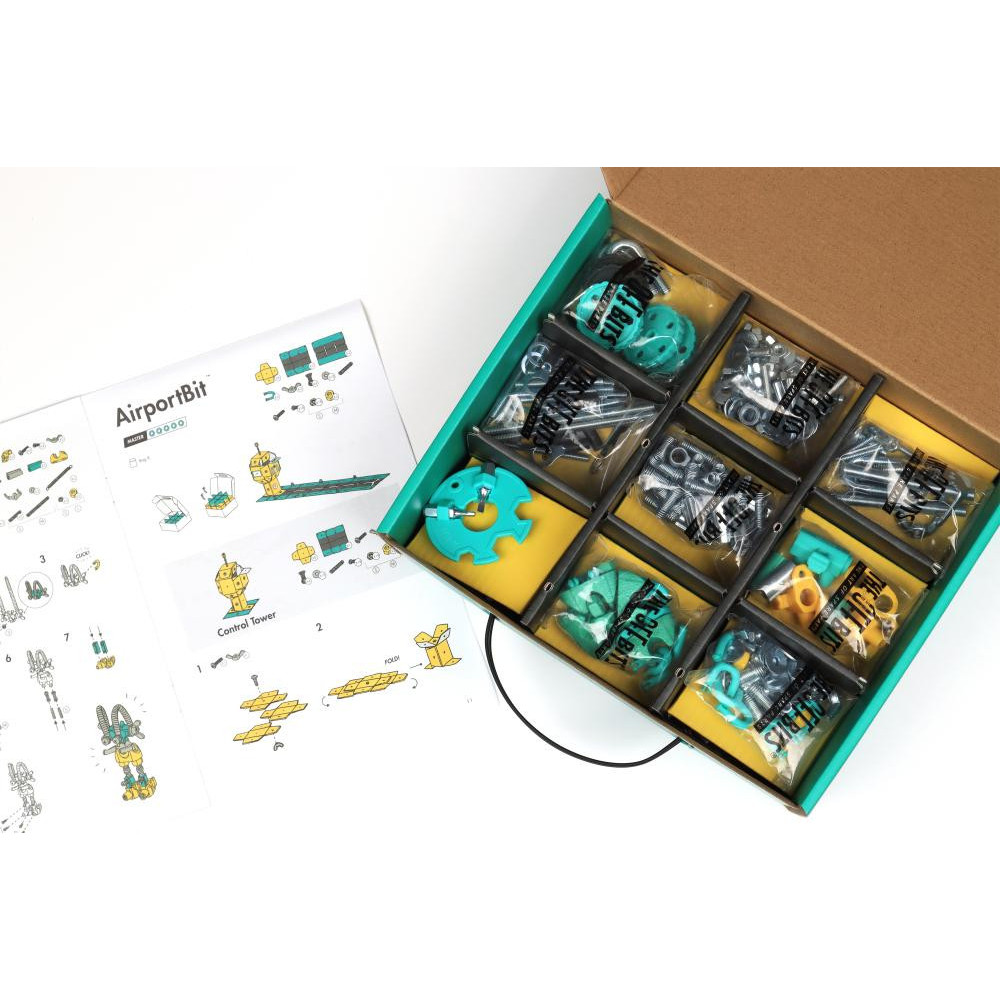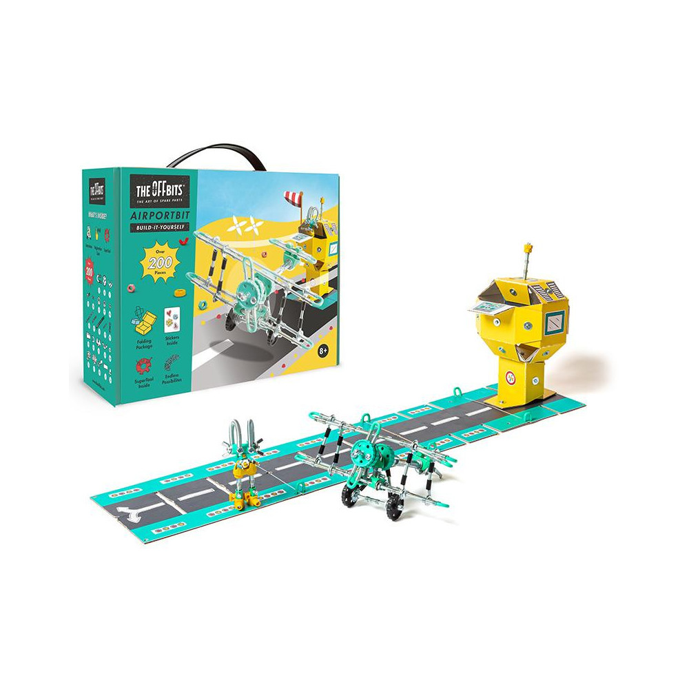 Sestavte PlaneBit a MarshalBit z matiček a šroubků a proměňte karton OffBits v letiště plné možností. Vytvořte řídicí věž a přistávací dráhu z kartonu a samolepkek. Nyní jste připraveni ke startu. Sada obsahuje více než 200 barevných matic, šroubů, tvarovaných kousků, samolepek a naše víceúčelové balení s nulovým odpadem, které se promění v součást herního zážitku a stane se letištěm. Popusťte uzdu své fantazii. Tato sada umožňuje vytvoření čtyř modelů s dalšími nekonečnými možnostmi pro vaše vlastní kreativní nápady. Jedná se o hračku, která pomáhá mladým lidem růst v oblastech vědy, technologie, inženýrství, umění a matematiky. Hračky OffBits také podporují rozvoj jemné motoriky, prostorové představivosti, řešení problémů a nápadité hry. Co můžete postavit:PlaneBit, MarshalBit plus nekonečné množství jedinečných výtvorů, které můžete postavit pomocí své fantazie. Máte kolem sebe karton, šroubky nebo jiné zábavné materiály? Vylepšujte s předměty každodenní potřeby a vytvořte také své vlastní jedinečné vynálezy. Hlavní vlastnosti: obsahuje nářadí pro sestavení stavebnicekompatibilnost s každodenními předmětyrozvoj kreativity, jemné motoriky i logického myšlenívhodné od osmi letvíce než 200 dílůobal je součástí herního zážitku