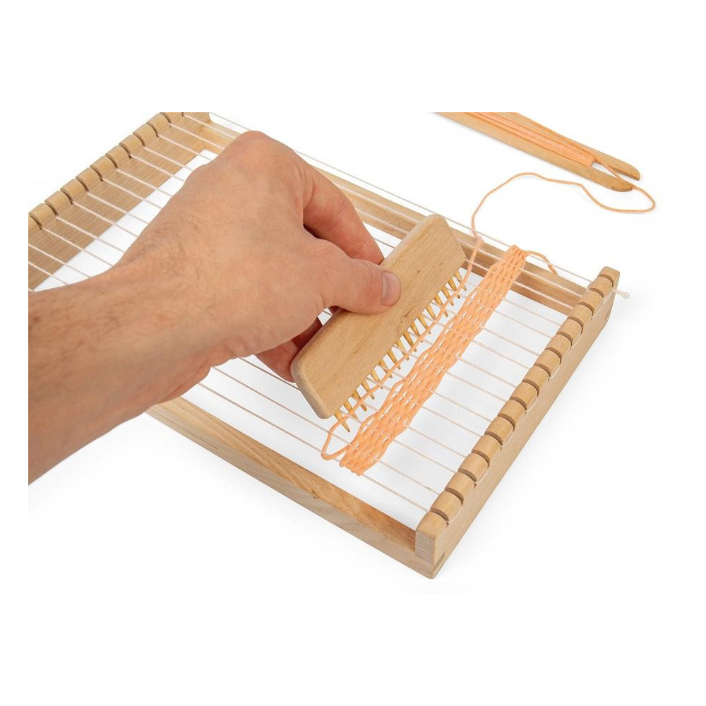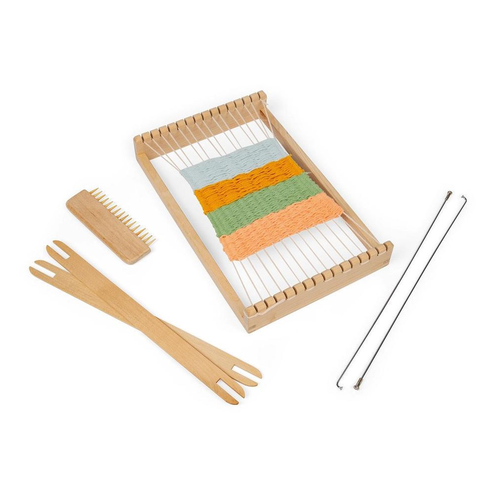 Kreativní mládež si zamiluje tento tradiční dřevěný tkalcovský stav, který obsahuje 4 příze a výběr základních nástrojů. Dřevěný tkalcovský stav je robustní a zároveň ideální velikosti pro malé ručičky. Pomáhá rozvíjet jemné motorické dovednosti, kreativitu, soustředění a trpělivost. Tkalcovský stav je vyroben z dřeva s certifikací FSC®. Splňuje všechny aktuální evropské bezpečnostní normy.