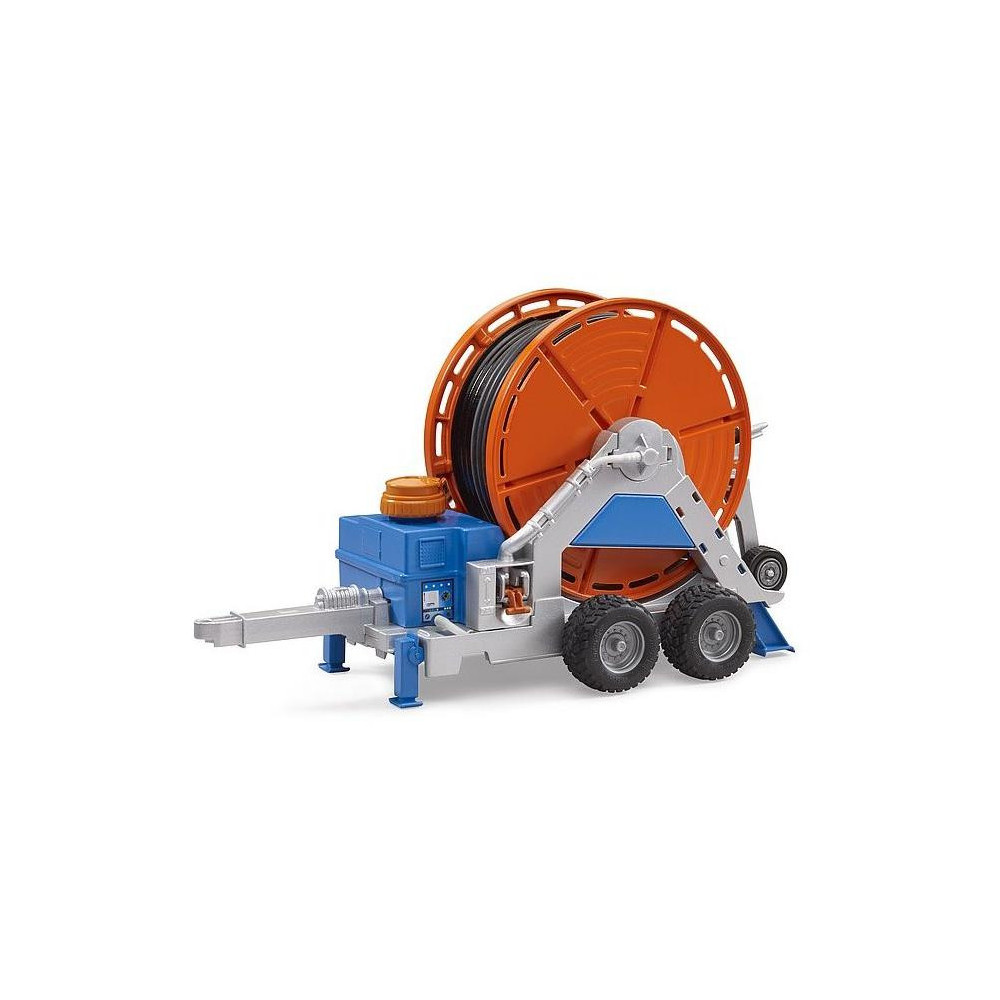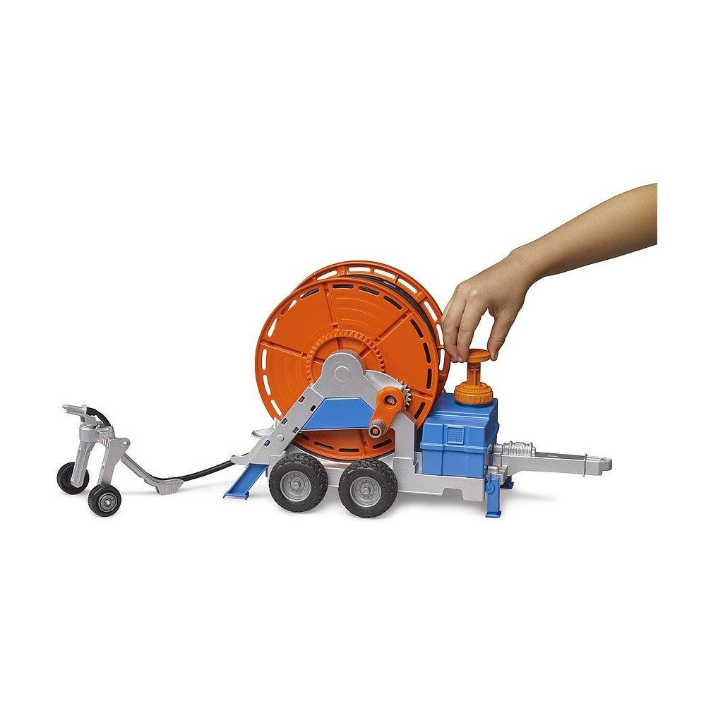 Ať už se jedná o sportovní hřiště, školky, pole, sady nebo jiné velké plochy, všude tam, kde je potřeba rovnoměrná a stálá dodávka vody, mají zavlažovače své místo. Tento důležitý stroj pro úspěšné zemědělství je nyní k dispozici. Pomocí navijáku ovládaného kličkou mohou mladí farmáři navinout na zavlačovací vůz 1,8 m dlouhou hadici, na kterou je připojen postřikovač. Součástí je i nádrž s funkčním čerpadlem. Díky systému čerpadla lze vodu rozvádět snadno a realisticky.