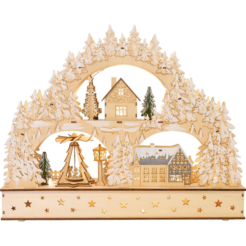 Krásná a nadčasová vánoční a zimní dekorace, která během adventu patří do každé domácnosti. Tato velká dřevěná vánoční archa, není jen ozdobným poutačem v designu zimní vesnice, ale zaujme také svými světelnými a zvukovými funkcemi. Baterie nejsou součástí balení.