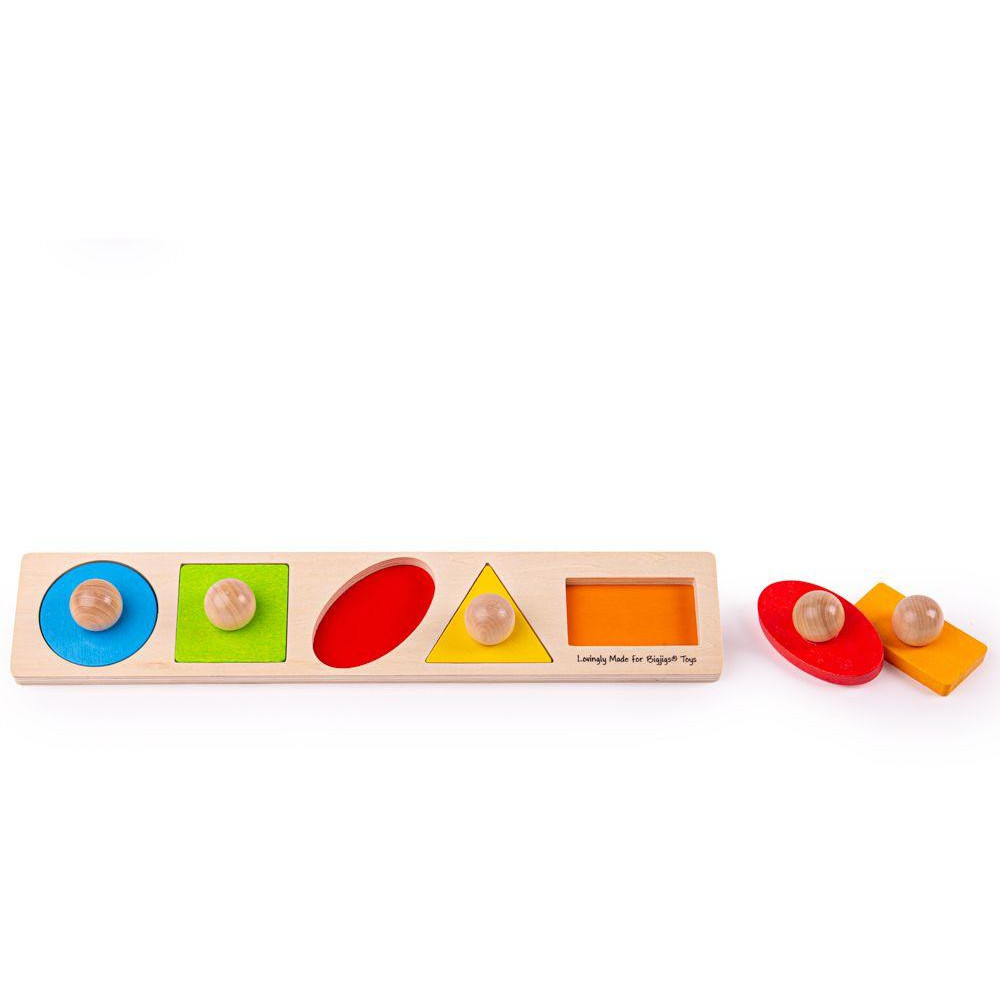 Přiřaďte každý pestrobarevný tvar ke správnému otvoru na základní desce. Dílky jsou jednoduše uchopitelné pomocí kuličky, která je na každém tvaru. Díky těmto úchytům je pro malé ručky snadné zvedání, uchopování, zkoumání i vyměňování každého dílků. Pomáhá rozvíjet obratnost, motorické dovednosti a koordinaci ruka-oko. Vyrobeno z vysoce kvalitních materiálů ze zodpovědných zdrojů. Vyhovuje současným evropským a bezpečnostním normám.