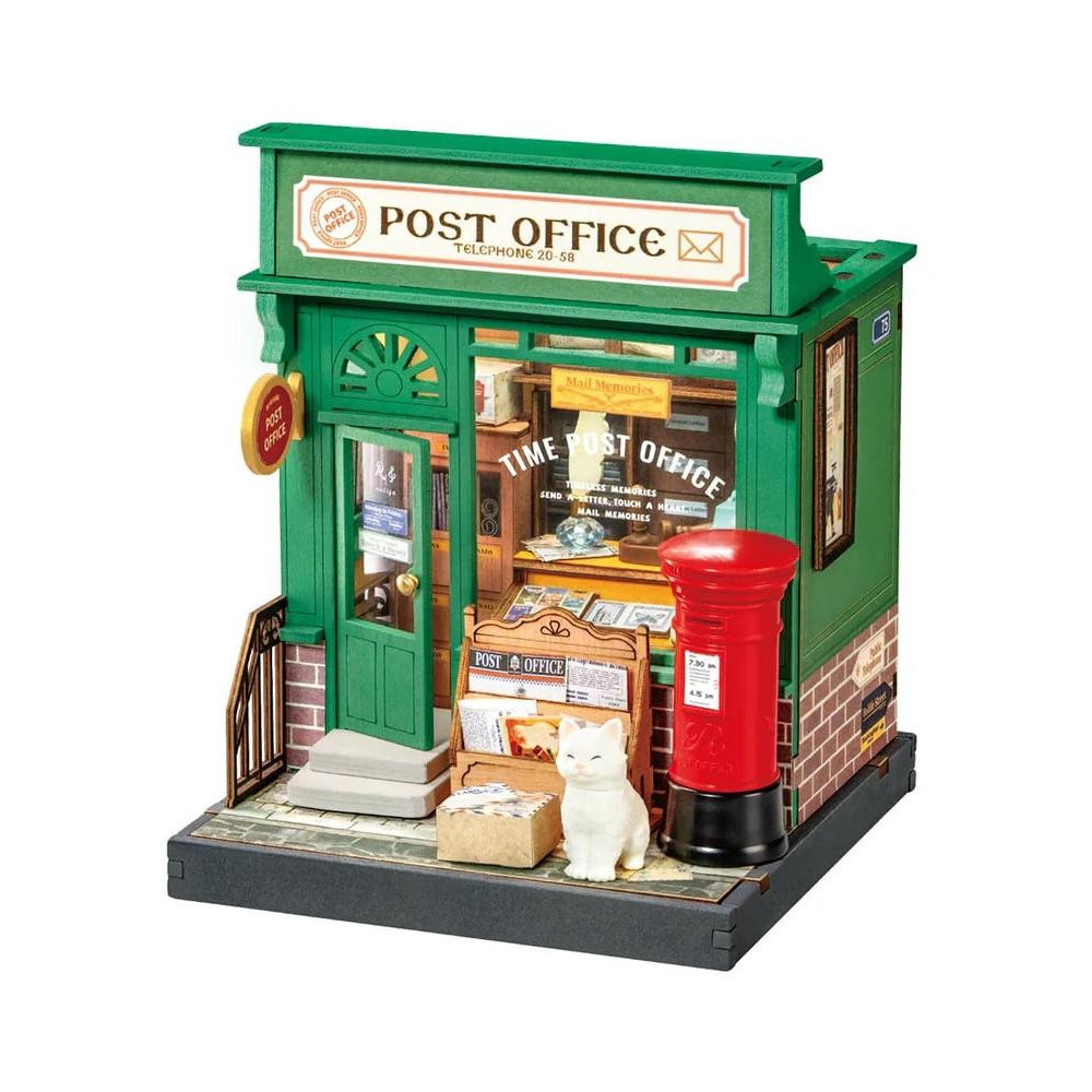 S touto miniaturou domečku můžete vzpomínat na dobu, kdy se posílála přání, pohlednice z dovolených nebo obálky s razítkem. Pošta byla brovskou součástí každého města. Složte si tuto okouzlující připomínku dávných časů ručně psaných dopisů. Detailní miniaturu, která zahrnuje klasické značení, nápisy na oknech, psací stroj, obálky s leteckou poštou na balíku, věšák na noviny, realistickou poštovní schránku a poštmistrovský stůl. Dokonce i drobné detaily, jako jsou cihlové akcenty, schodiště a roztomilá kočička, vyzařují dobu na malém městě. Zpomalte, otevřete sadu pro kutily a postavte tento drahocenný most do minulosti. Hlavní vlastnosti: nádech starých časů54 precizně vyřezaných dílůmateriál dřevo, plast, papírnízká obtížnostdoba montáže cca 1,5 hodinyvhodné od 14 let
