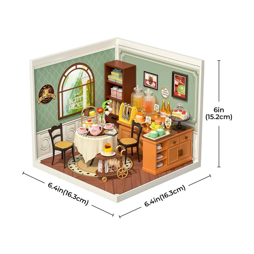 Máte chuť na čaj? Vítejte ve stylové vintage čajovně se zelenkavými stěnami se starožitným vybavením a detaily, jako jsou posezení s kulatým stolkem s krajkovým ubrusem, hrnečky, talířky, sladkosti a mnoho dalšího. Vychutnejte si atmosféru klidu umocněnou vůní čerstvě uvařeného čaje a upečených dobrot. Spojením různých miniatur řady Super Creator Series vertikálně nebo horizontálně můžete vytvořit různorodý komplex domečků. Ochraňte svůj výtvor pomocí krytů proti prachu a nečistotám – DWP05 Dveře proti prachu B a DWP02 Střecha typu B. Skládání skládačky podporuje rozvoj jemné motoriky, prostorového myšlení a trpělivosti. Je to možnost, jak kombinovat zábavu se vzděláváním. Všechny přesné dílky do sebe lehce zapadnou, aby výsledek byl stabilní a odolný, a to bez použití lepidla. Skládačka je dodávána v nesloženém stavu, zabalená v krabici s podrobným návodem k sestavení. Hlavní vlastnosti: 154 dílkůdoba skládání 1 hodLED osvětleník napájení slouží kabel USB-C (je součástí balení)sestavení bez použití lepidlavýjimečný vzhledvhodné pro děti i dospělérozvíjí logické a motorické dovednostipodporuje trpělivost dětíideální jako dárek nebo jedinečná dekoracemožnost spojení více miniaturk dokoupení kryty proti prachu – DWP05 a DWP02
