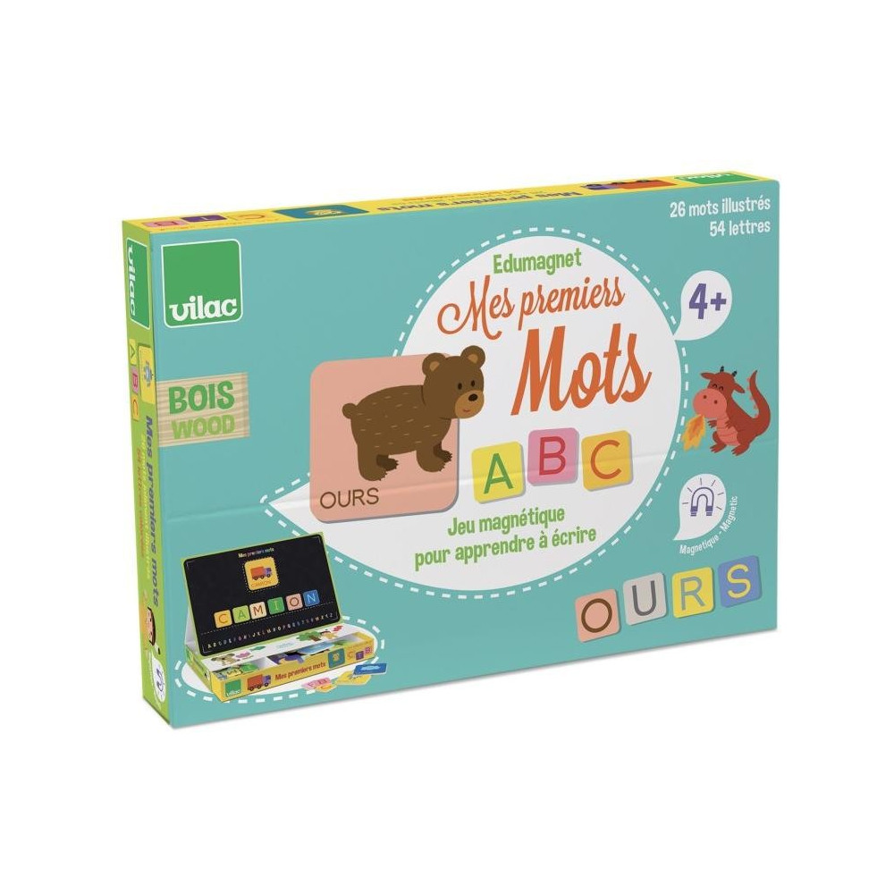 Vilac Magnetická tabulka Moje první slova Tato vzdělávací hra s 80 dřevěnými magnety je ideální ke skládání prvních slov za pomocí ilustračních magnetů. Obsahuje 26 ilustrovaných slov a 54 písmen. Hračky Vilac mají značku francouzské agentury ADEME, to znamená, že tyto dřevěné hračky jsou vyráběny ekologicky. Šetří životní prostředí, neznečišťují půdu, vodu a vzduch, neplýtvají energiemi. Již více než 100 let plní značka Vilac dětské sny. Společnost Vilac sídlí hluboko v srdci pohoří Jura, obklopena horami, jezery a lesy. Tato francouzská společnost vyrábí od roku 1911 dřevěné hračky v klasickém, starodávném stylu s moderními barvami a vzory. Hračky Vilac jsou jedinečné, nikdy nevyjdou z módy a dokáží okouzlit všechny generace. Vilac pomáhá utvářet dětskou představivost svými radostnými ilustracemi či dizajny a reinterpretací klasických hraček, které se jen tak neopotřebují. Děti dostávají na Vánoce a narozeniny spousty hraček, většina z nich je však nezaujme na dlouhou dobu, láska k hračce se nenaplní. Dřevěné hračky Vilac vzbuzují vášeň i o 50 let později, když jako dospělí náhodou najdete v podkroví hračky, které jste jako děti milovali. Vilac již 100 let propojuje děti s hračkami, které si oblíbí a váží si jich. A proč je děti tak milují? To zůstává tajemstvím firmy Vilac.